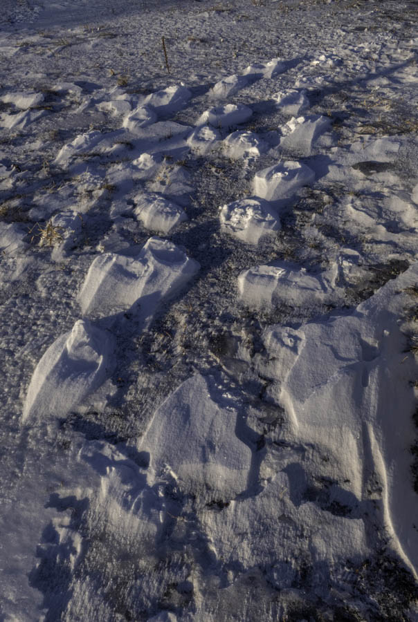 The wind blew all of the loose snow away leaving only my boot prints.