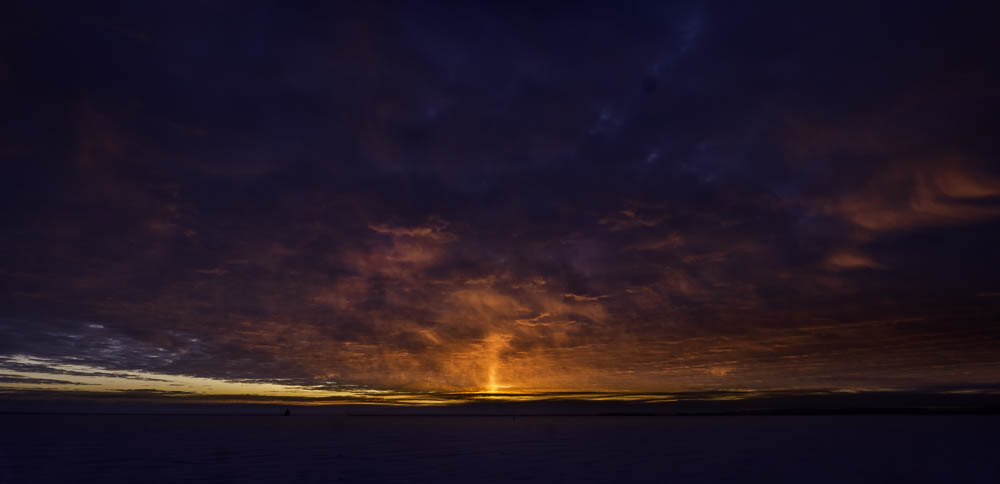 We have the sun blasting a ray of light up into the clouds
