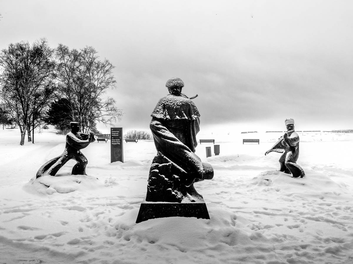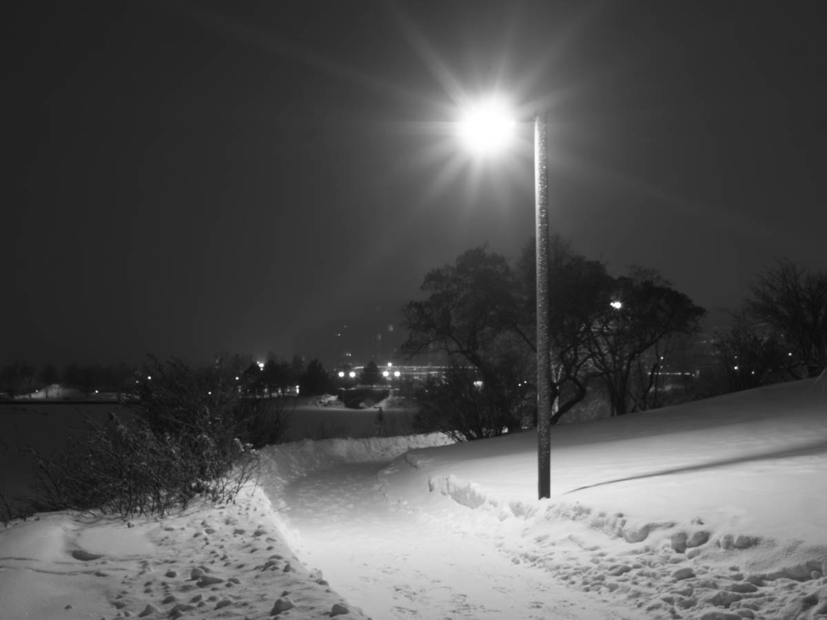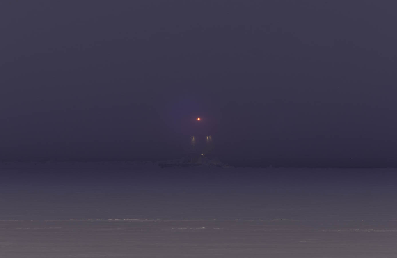 You can barely see the lighthouse. There are few lights out in the harbour. Since the last ship left yesterday, all of the lights at Keefer Terminal and the grain elevators have been turned off. Why the lighthouse is still on is unclear.