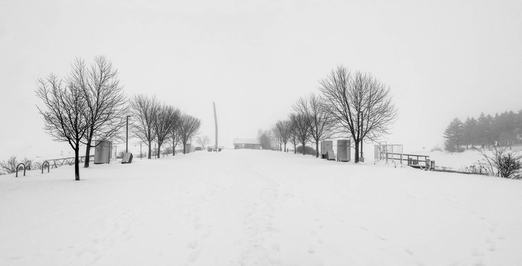 The view out there this morning. Not going to see the sun rise today. Fog
