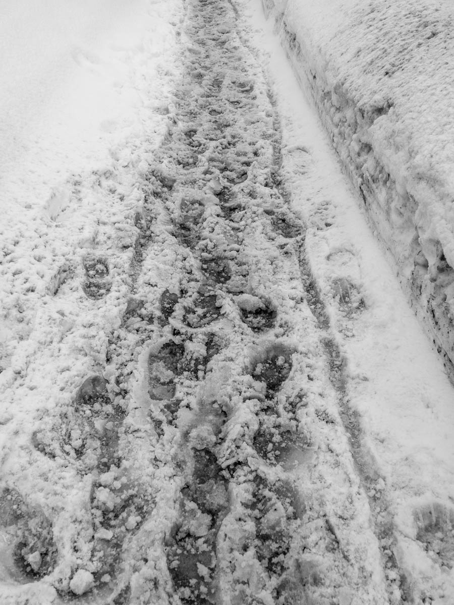 Pedestrians suffer in this city with sidewalks covered in frozen slop. . Meanwhile streets are bare.