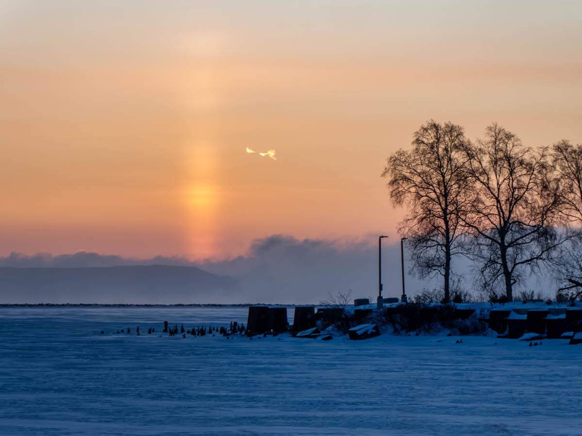 Cupwatch continues. Coldest morning so far this winter. Not going to take many photos today. Clear sky. No clouds to speak of. Pale colour along the horizon. Old standby. Moody shot. Pleasant winter scene.