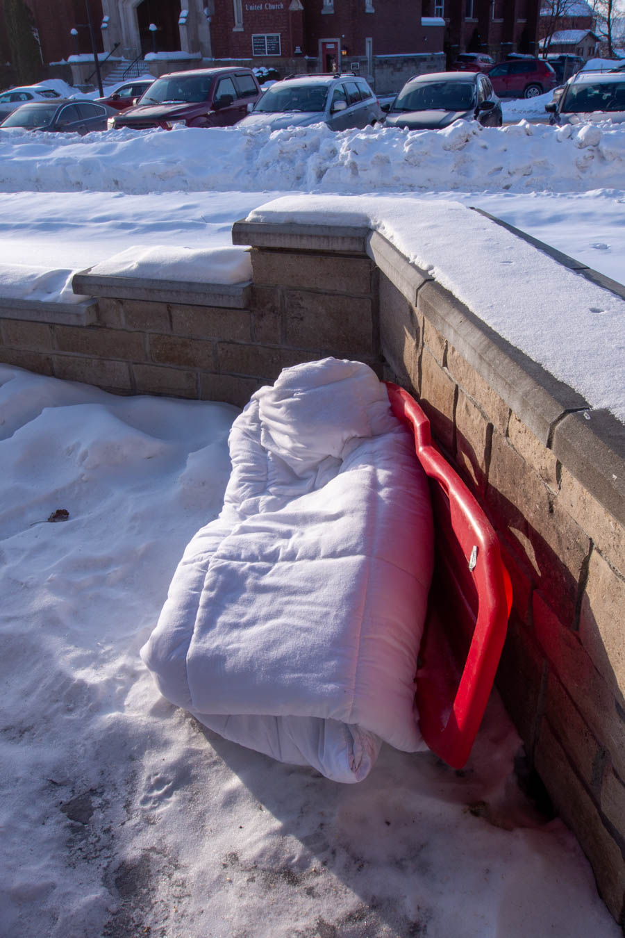 People still camping outside use the free electricity that the City of Thunder Bay provides.   This is one is used quite a bit.