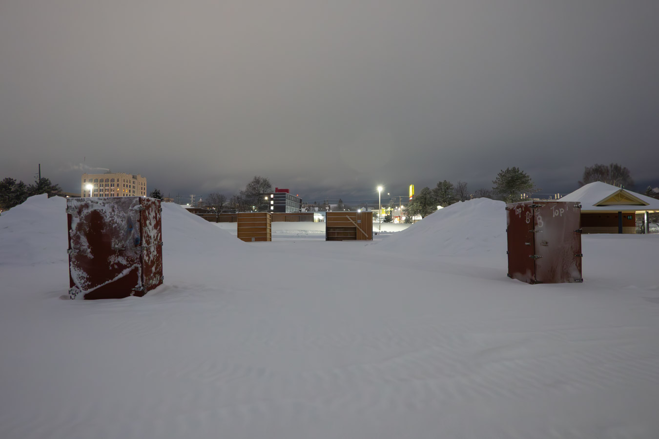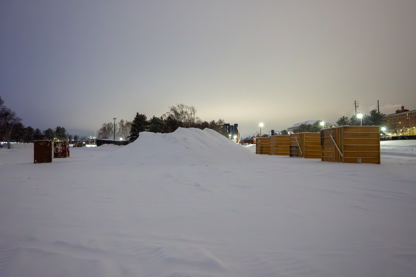 Getting things ready for the 2026 snow sculpture competition. Forms have been assembled. Now they must be filled with snow.