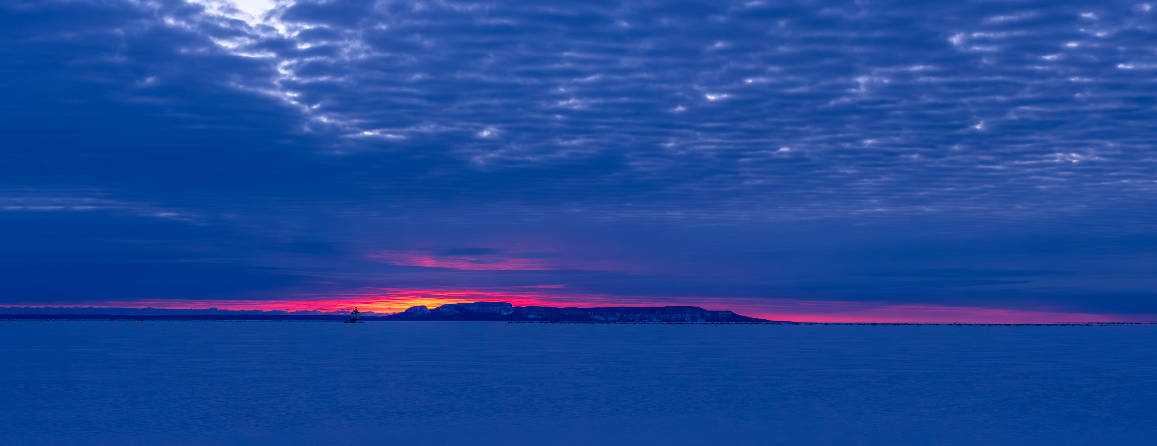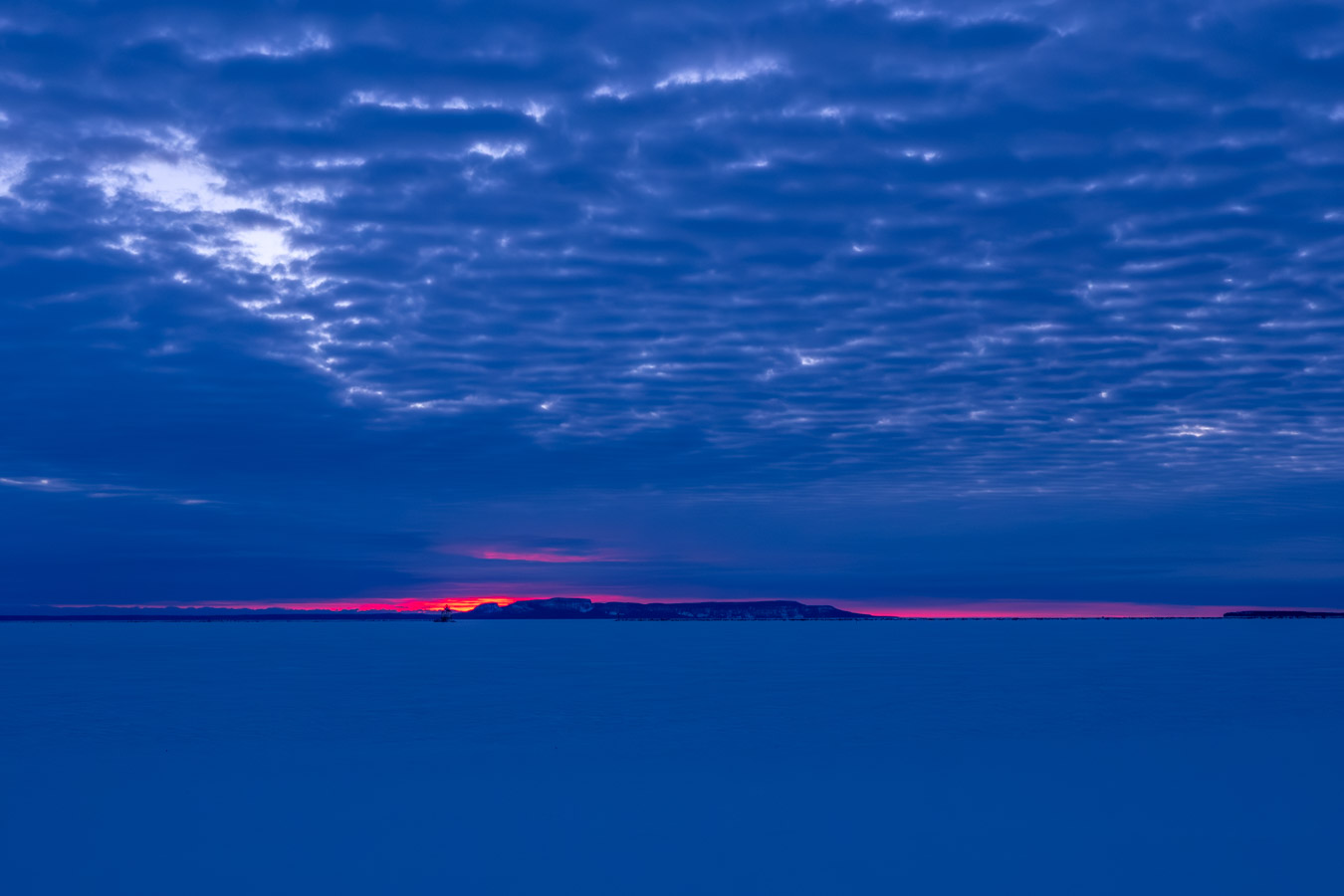 Another ‘strip along the horizon’ style of sunrise. This can go either way depending on which way the clouds are moving. The gap could close before the sun rises or it could expand.
