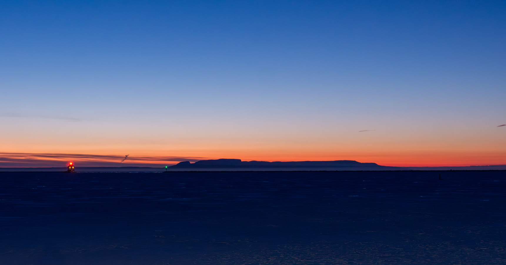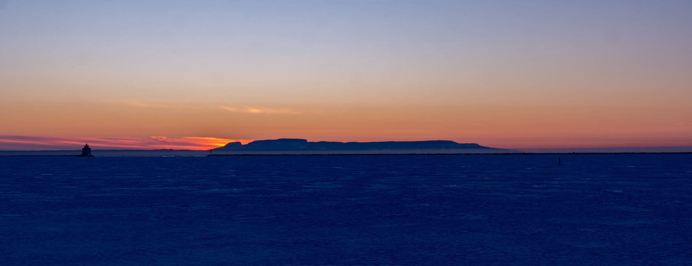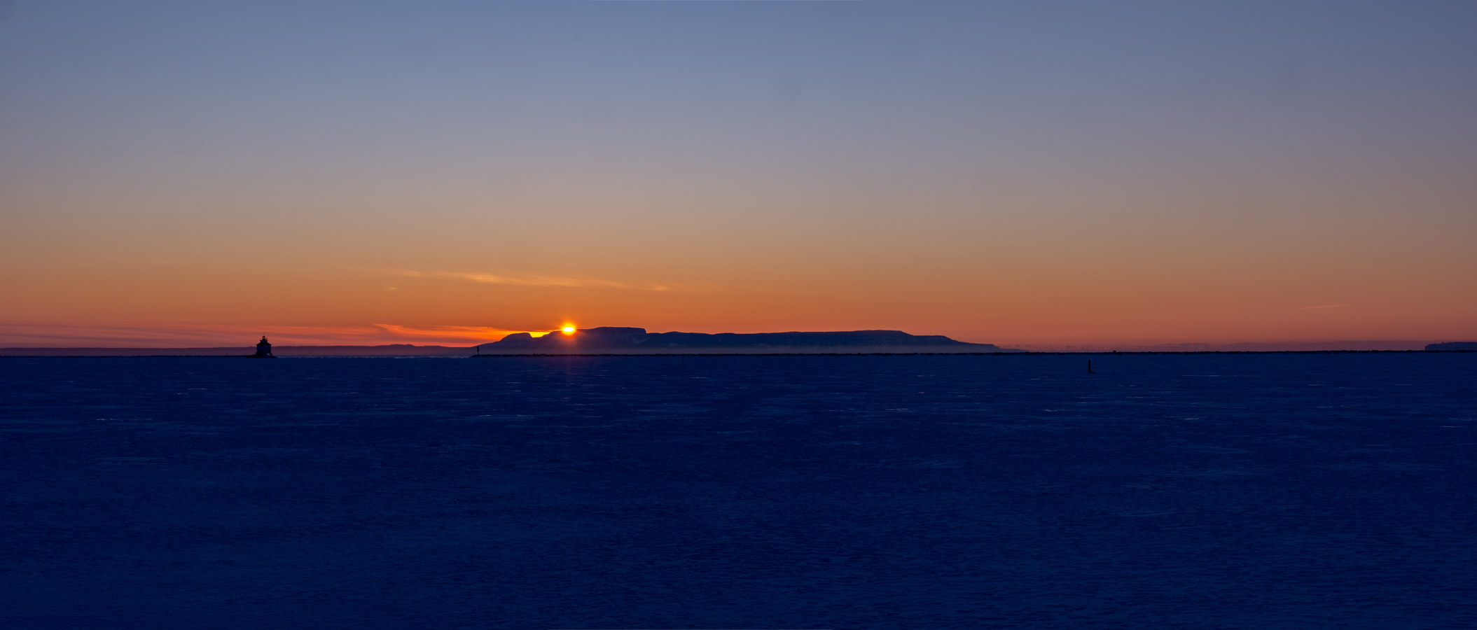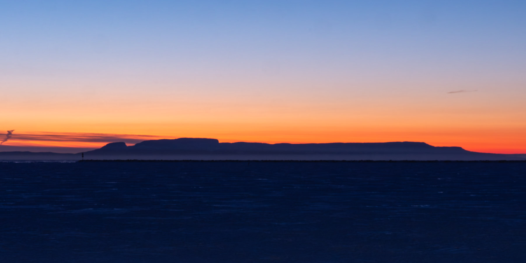 Clear but there are some clouds along the horizon. Nice colour there.