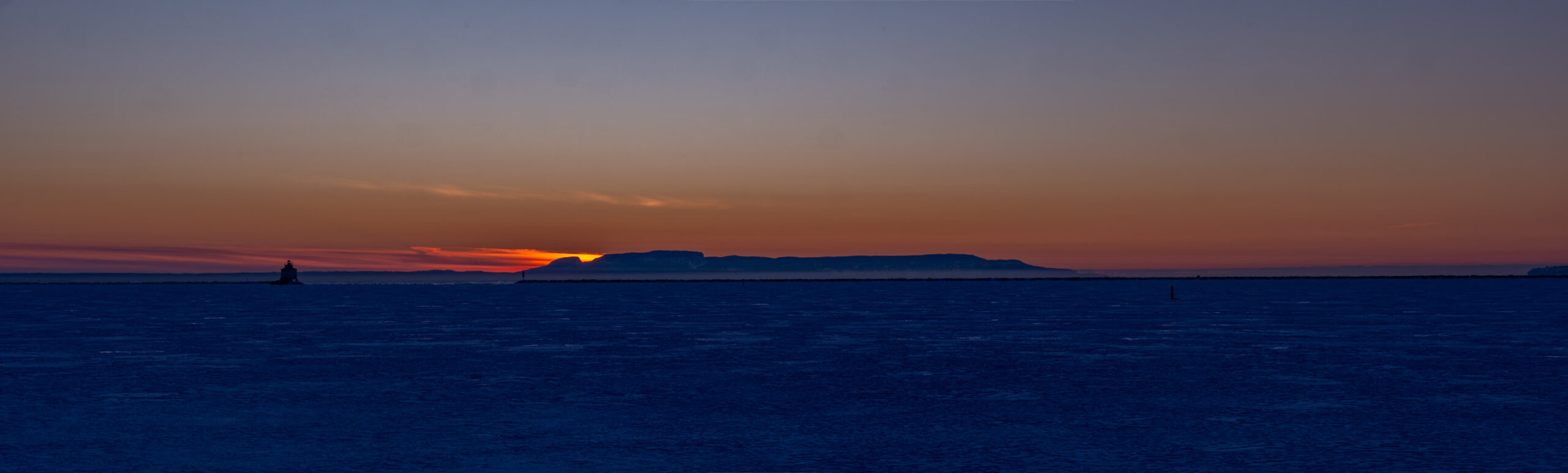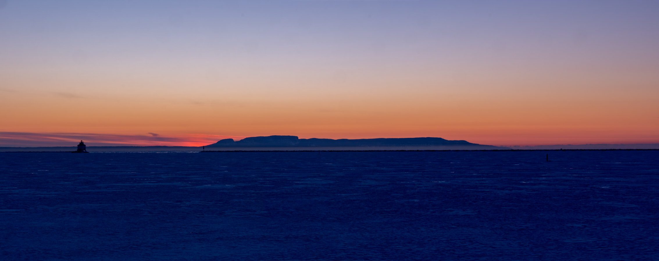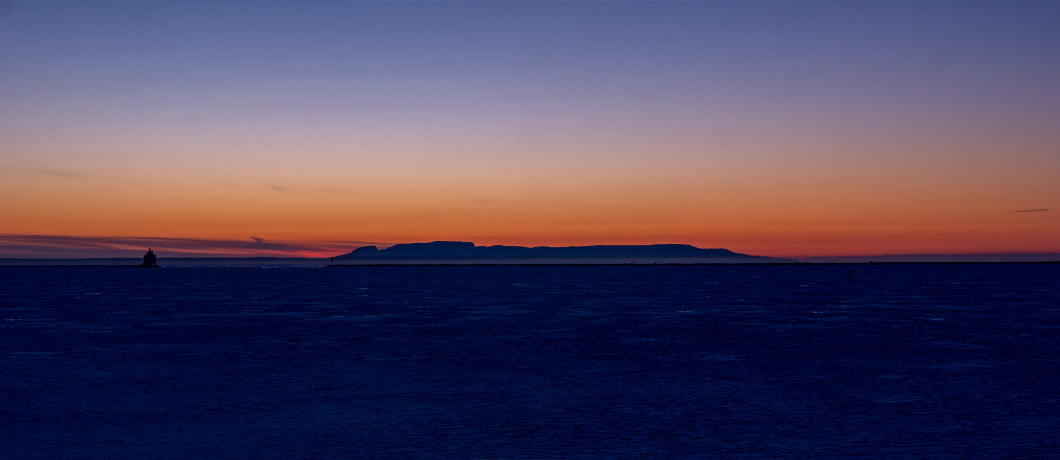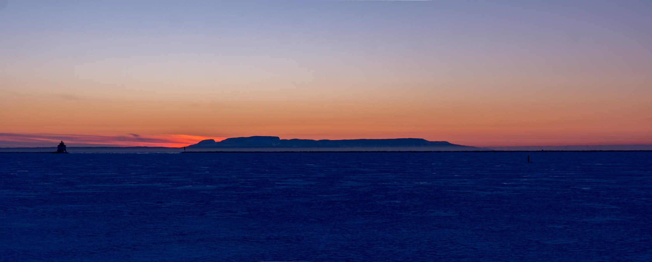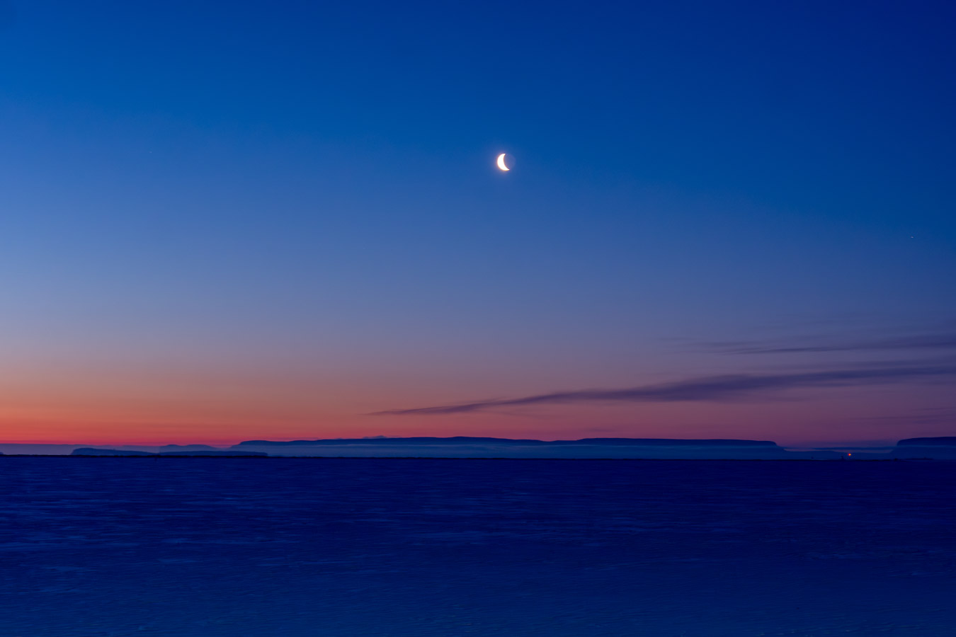 Clear but there are some clouds along the horizon. Nice colour there.
