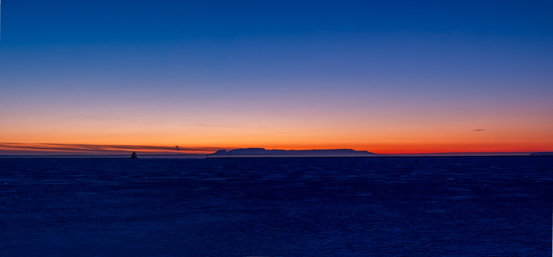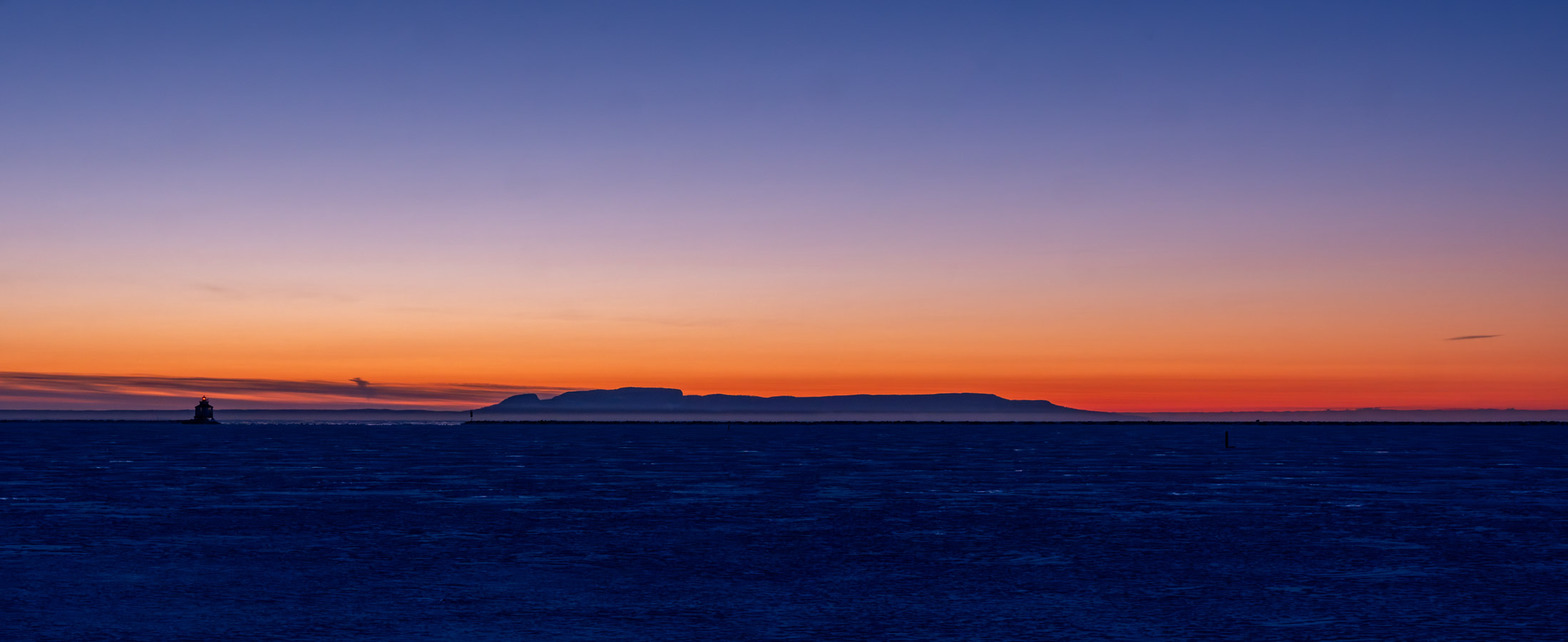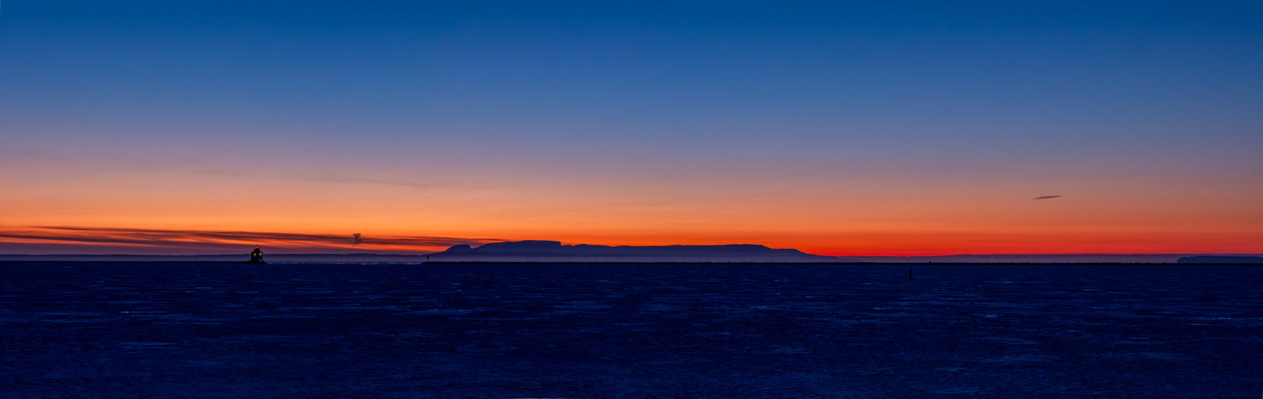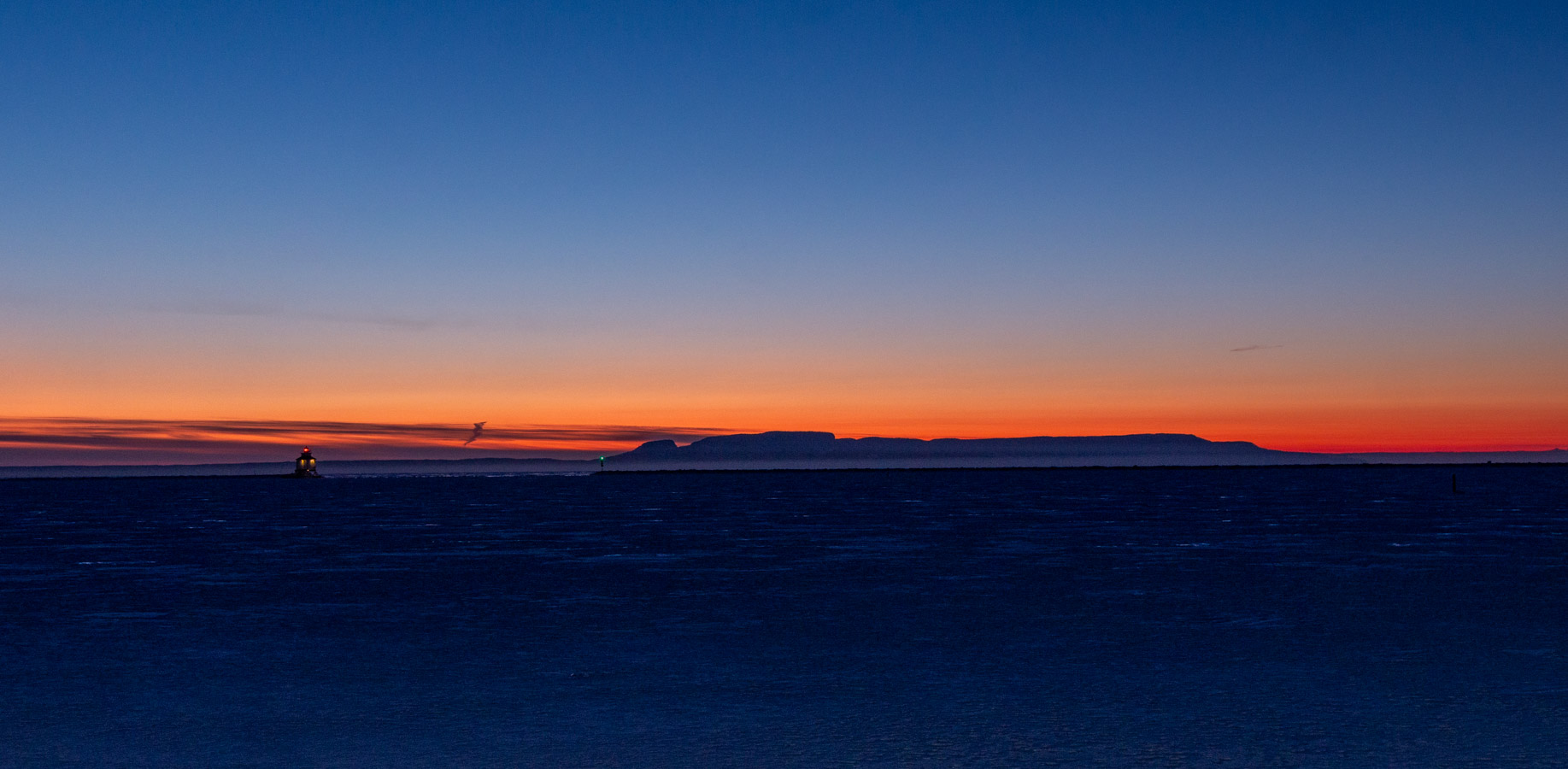 Clear but there are some clouds along the horizon. Nice colour there.