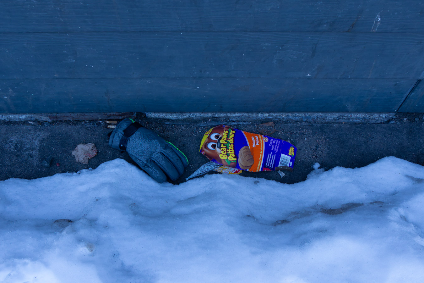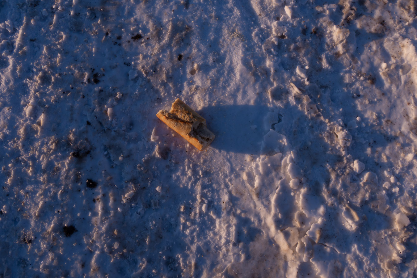 Someone left some bread for the birds. Sadly, its a heavy, frozen solid brick right now. No bird can do anything with it.