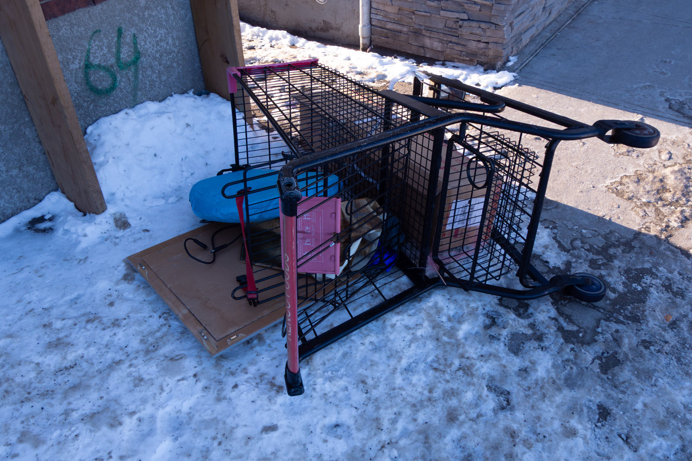 Renco Foods is a block away. Too far for the person to return this cart. Not your run-of-the-mill trash in this cart. Looks like someone was moving some of their stuff, then decided to quit for the day.