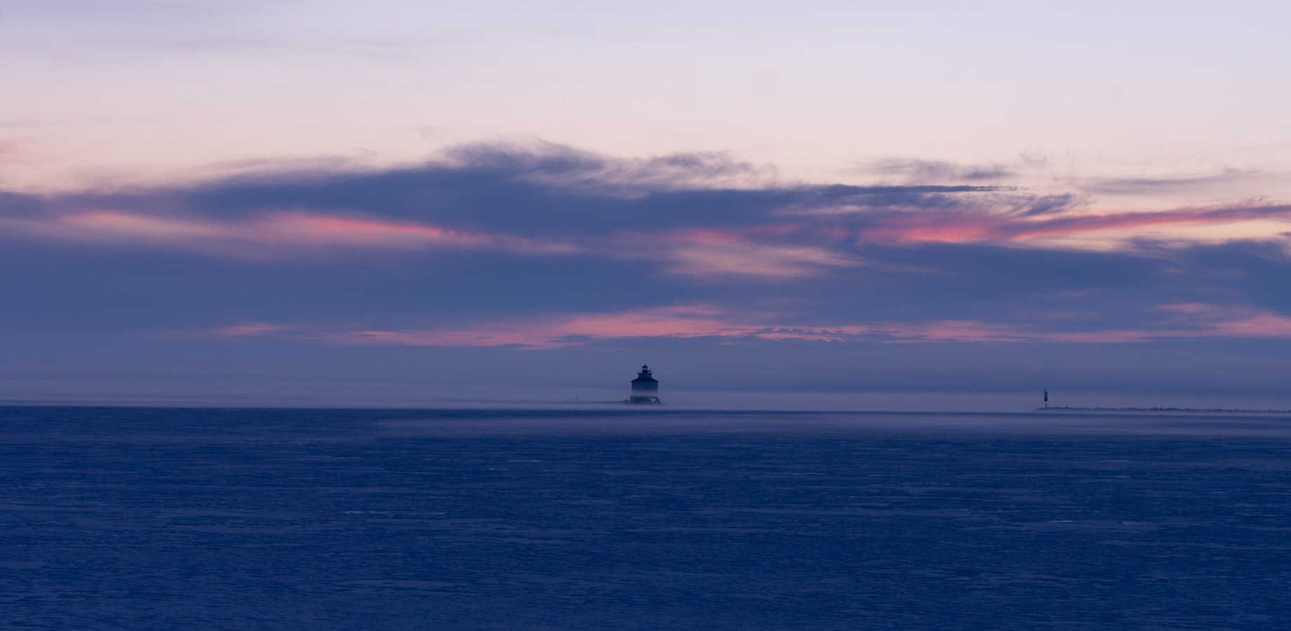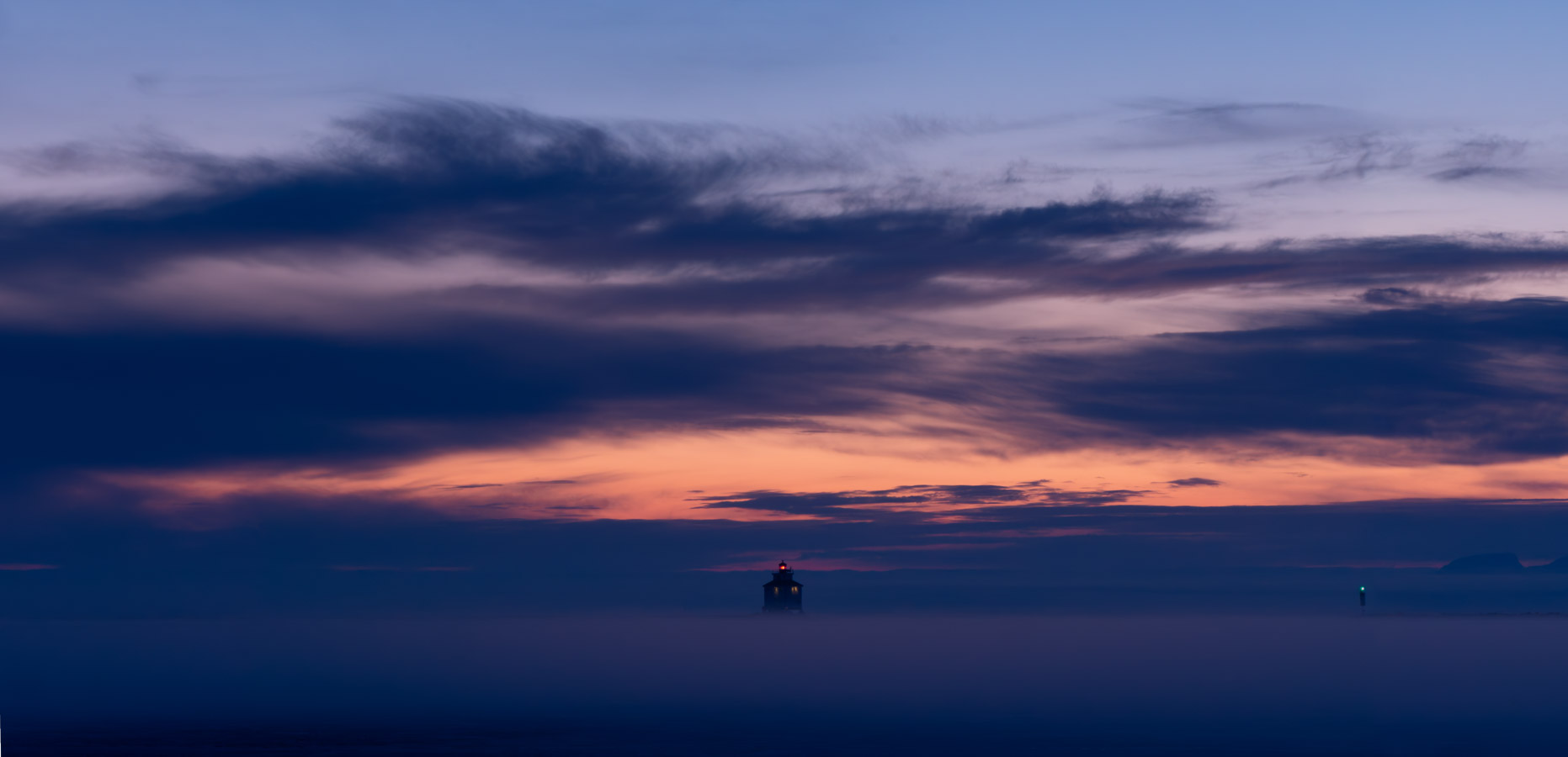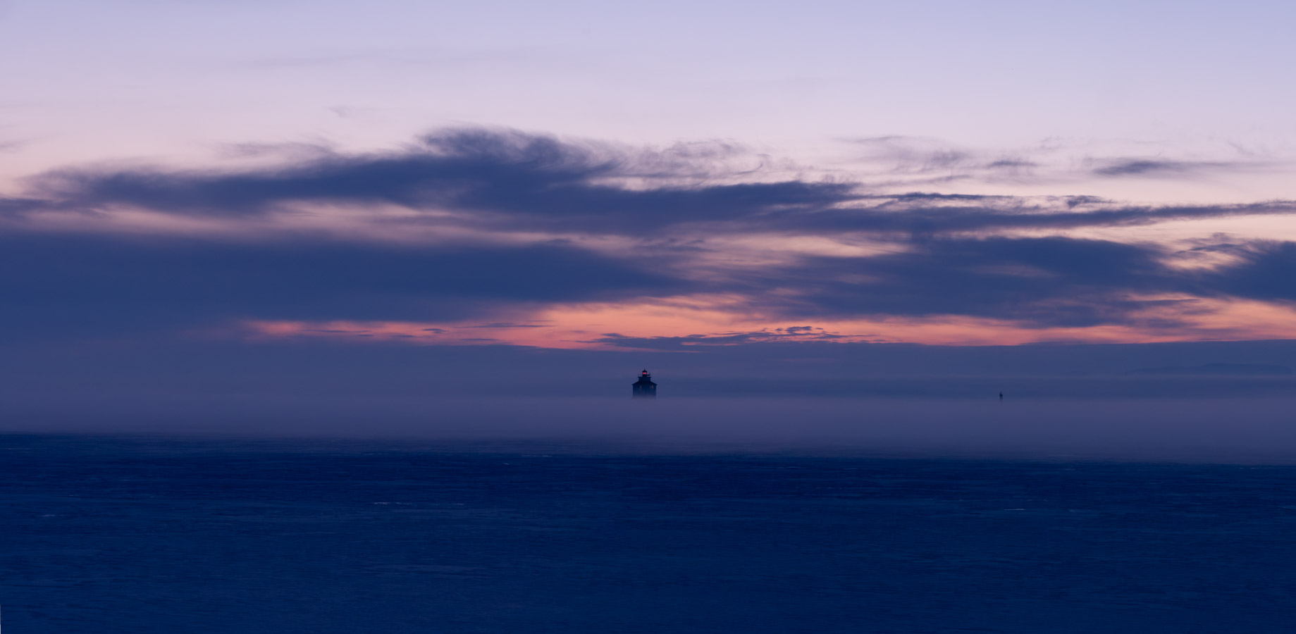 Fog approaching the shoreline