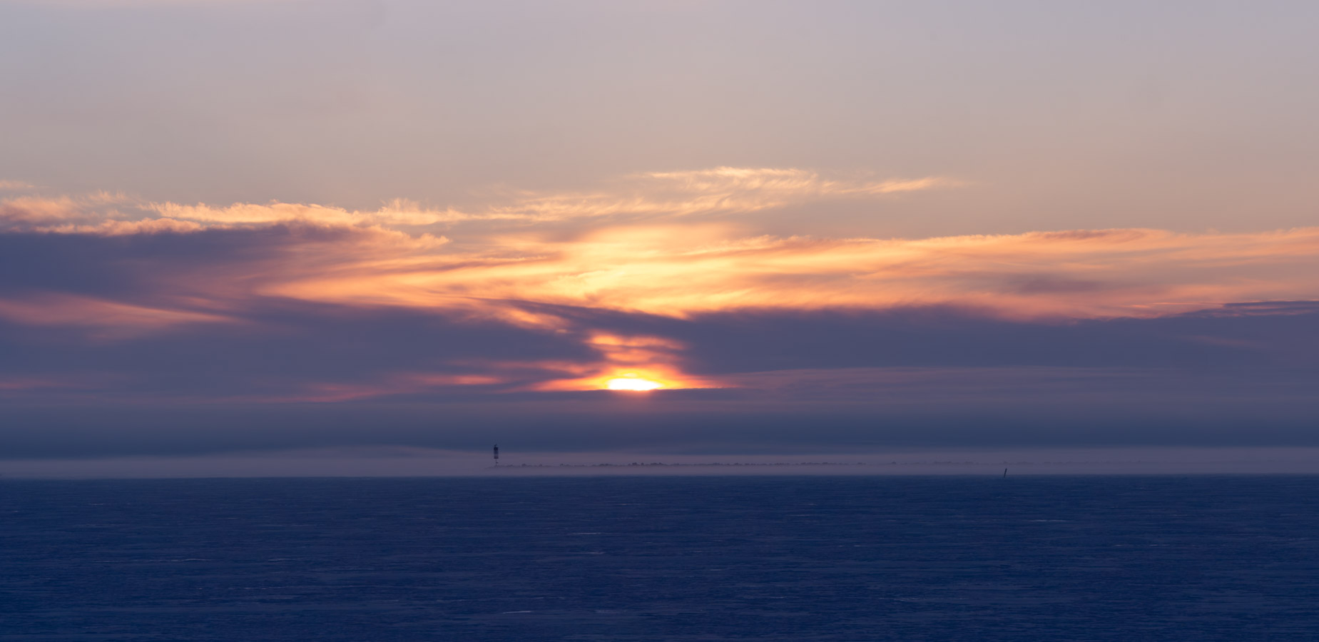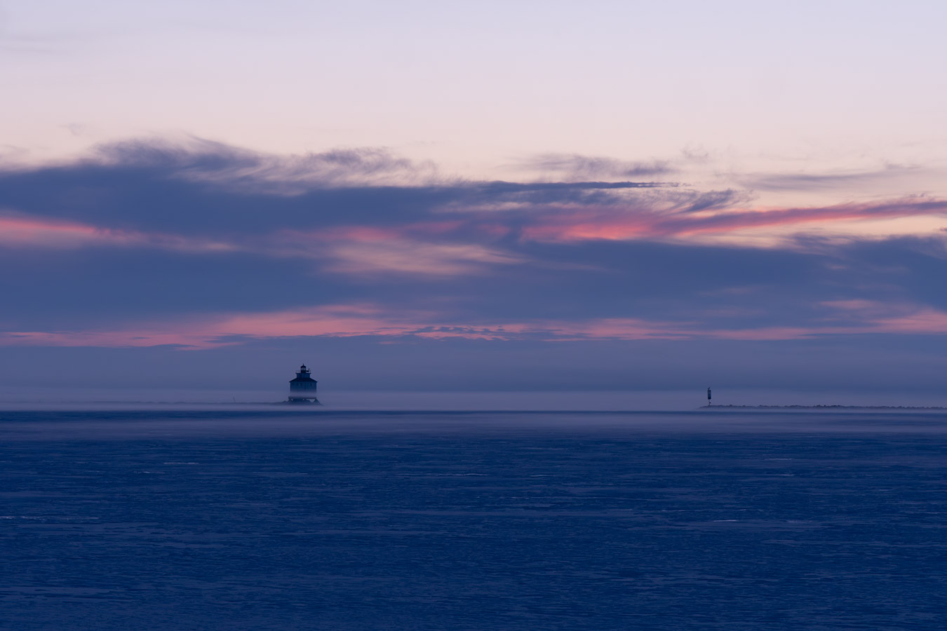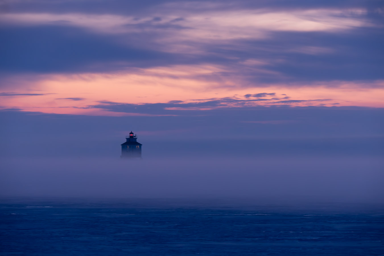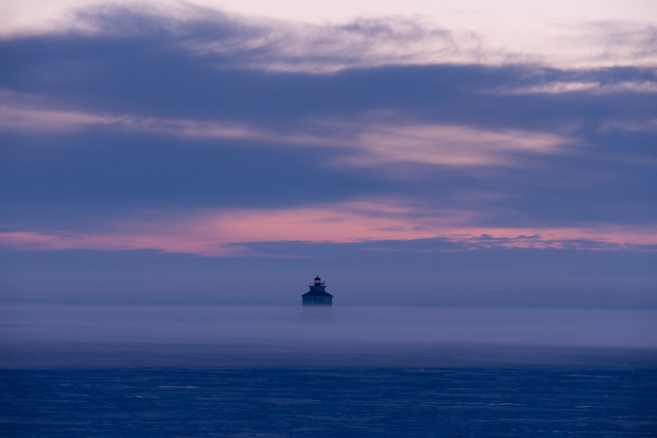 Fog approaching the shoreline