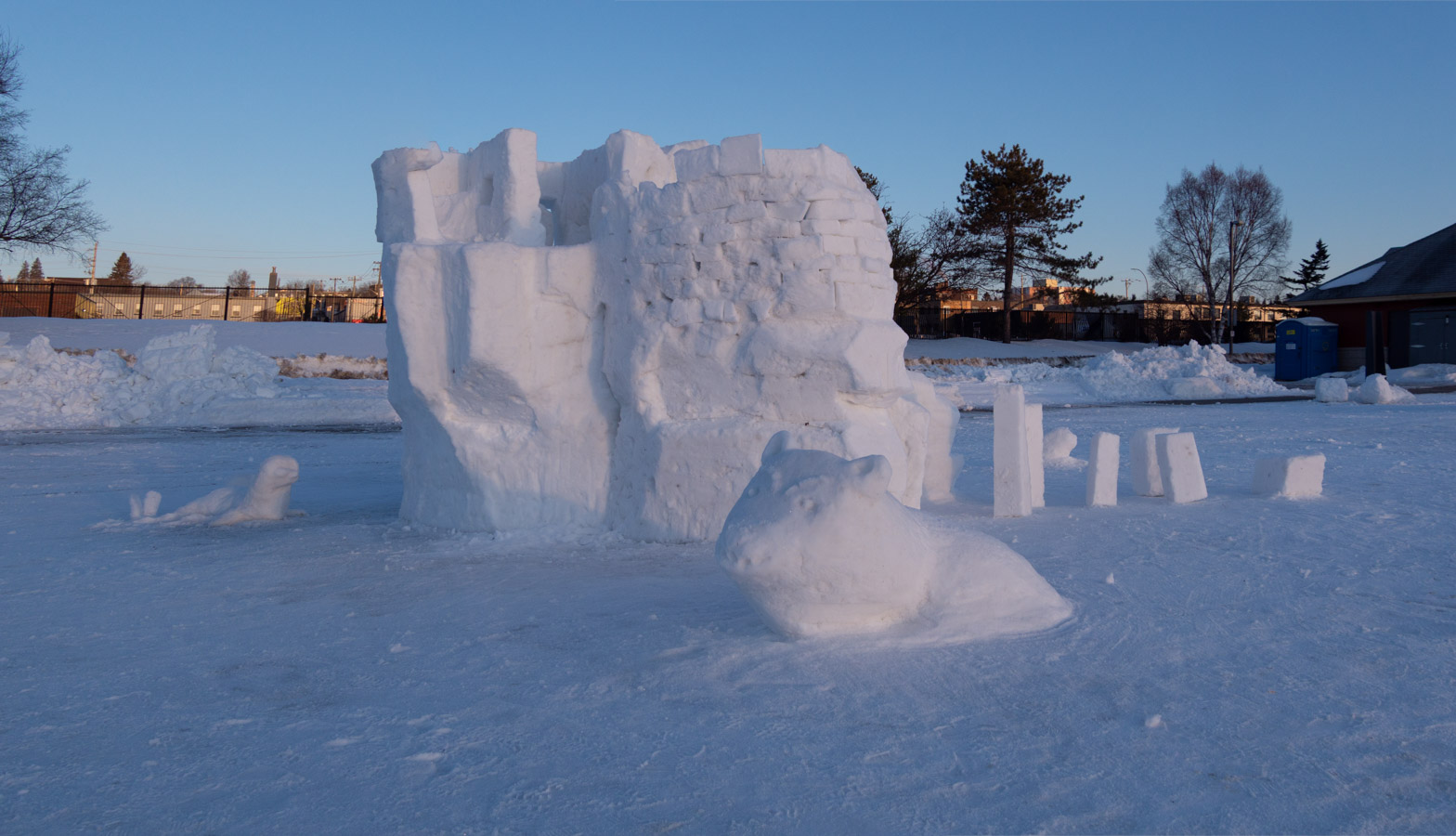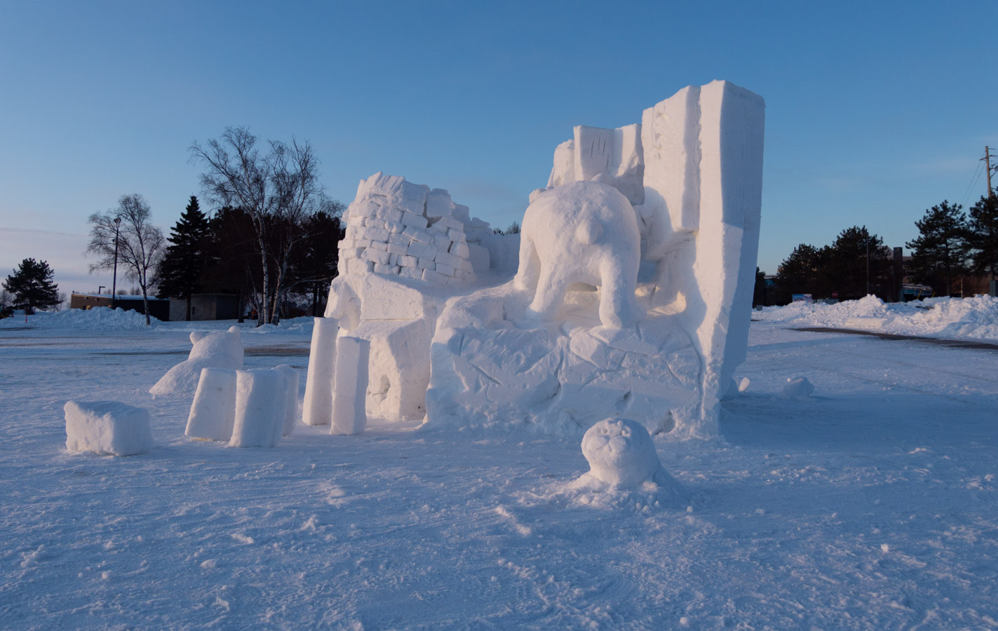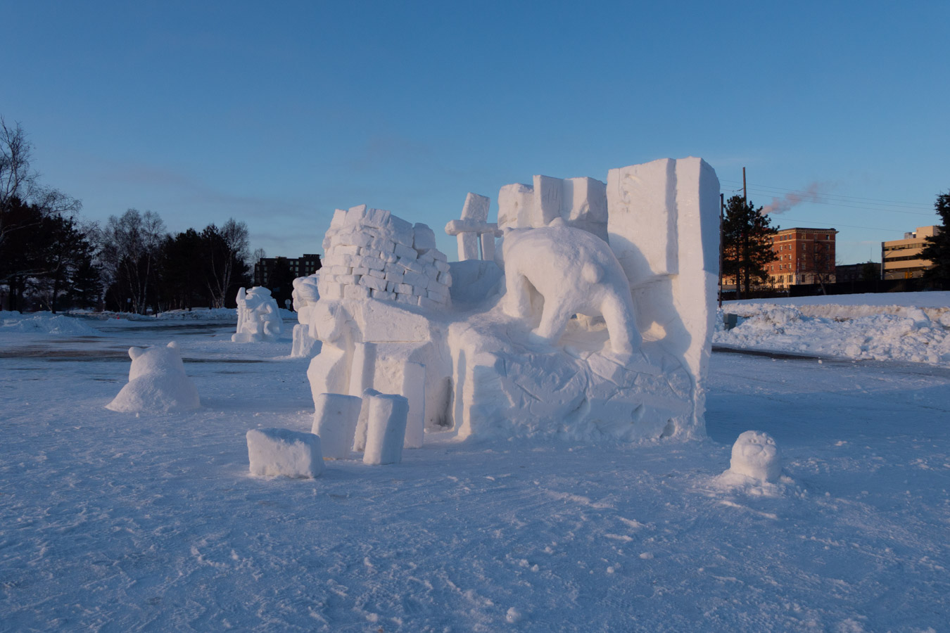 Snow sculptures today. Mostly complete