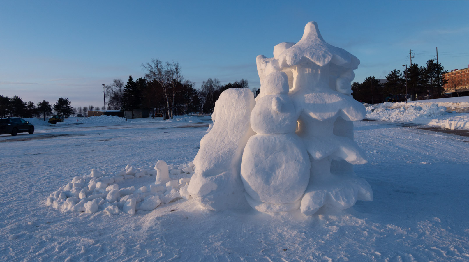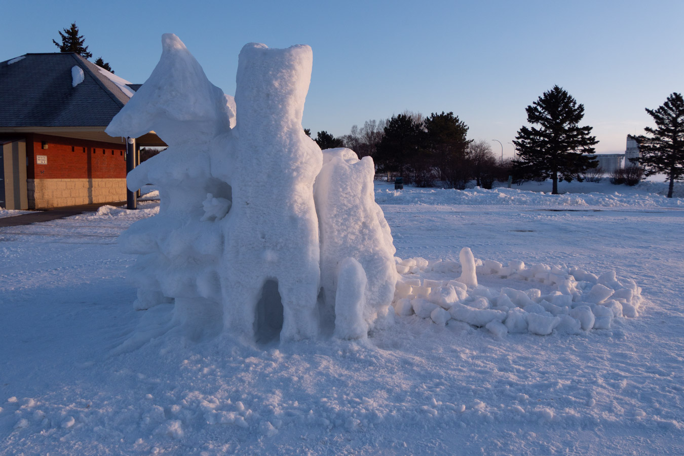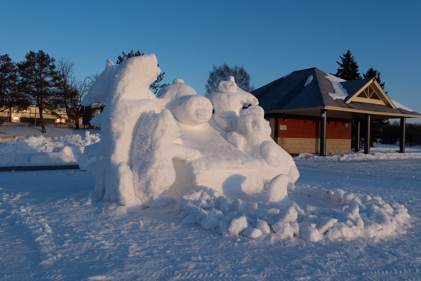 Snow sculptures today. Mostly complete
