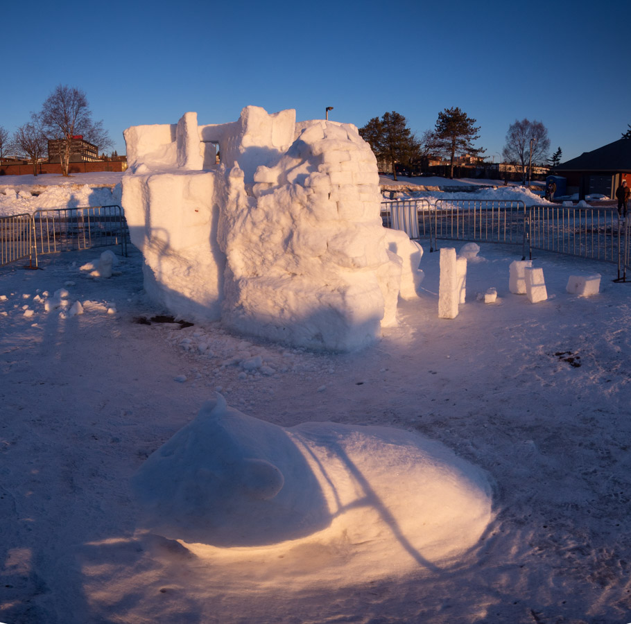 Snow sculptures today or what’s left of them after yesterday’s sunshine.
