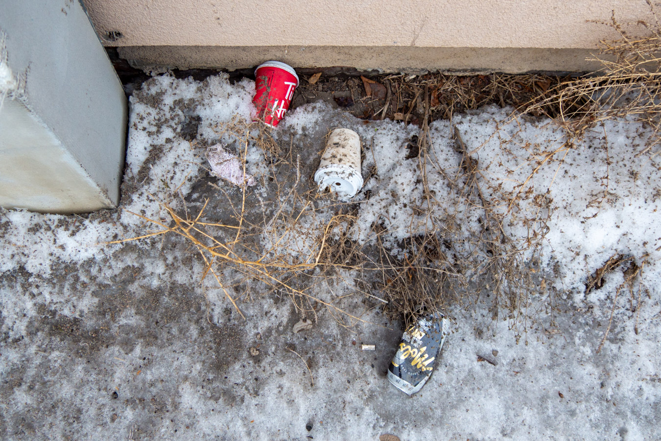 Trash in context. You are never more than 3 metres away from a Tin Hortons cup.
