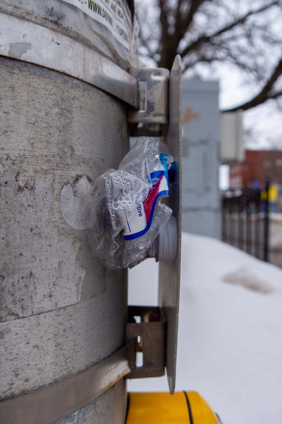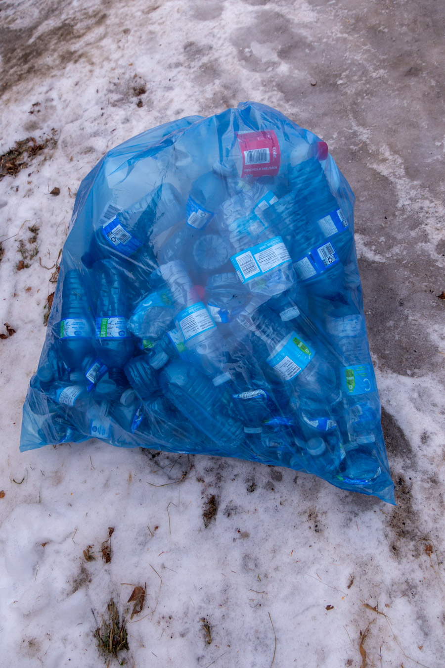 Water bottle photo.  Someone did not get the message about the new  method of recycling in the city.  Remember…these people are allowed to vote.