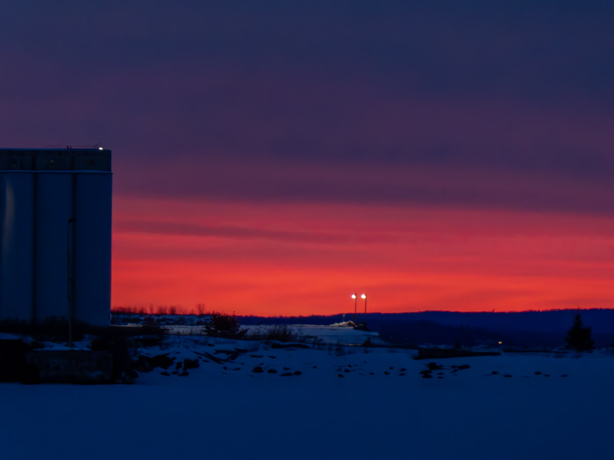 There was some red in the eastern sky.  The problem was that I had to point the camera into a very strong wind.   Wind is not good for longer exposures.  The camera does vibrate with the big gusts.  There was no place to go to get out of the wind.  If I got out of the wind, I can’t see the red shy.