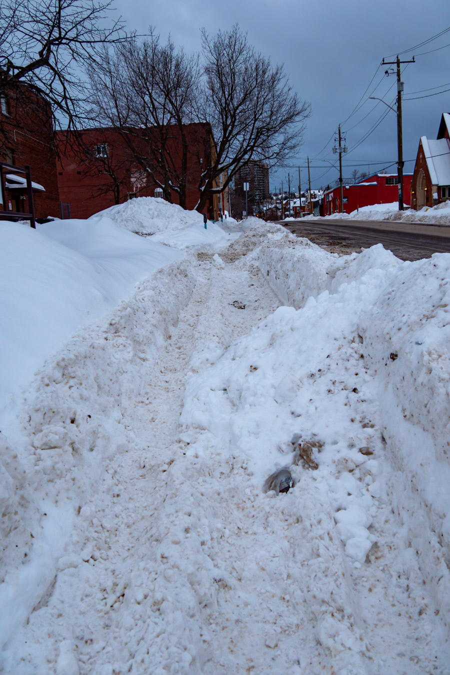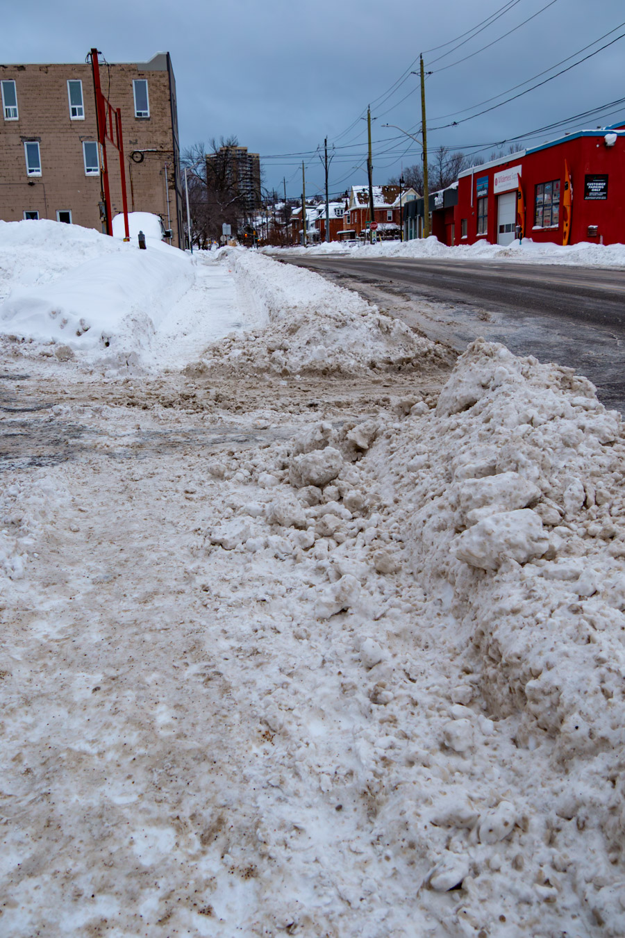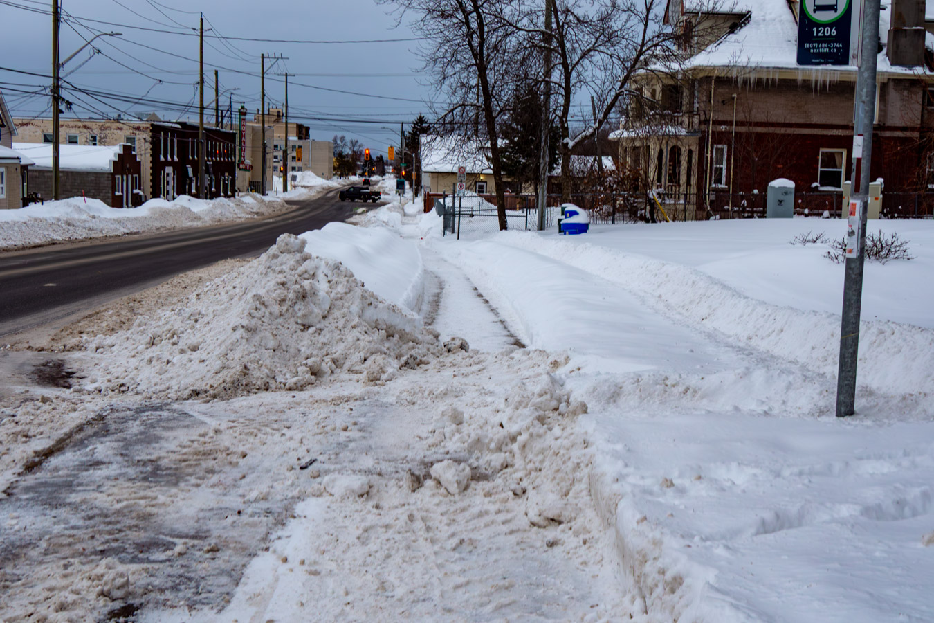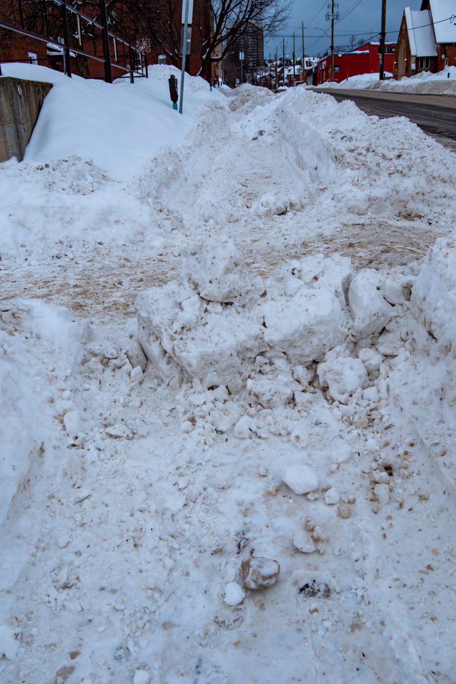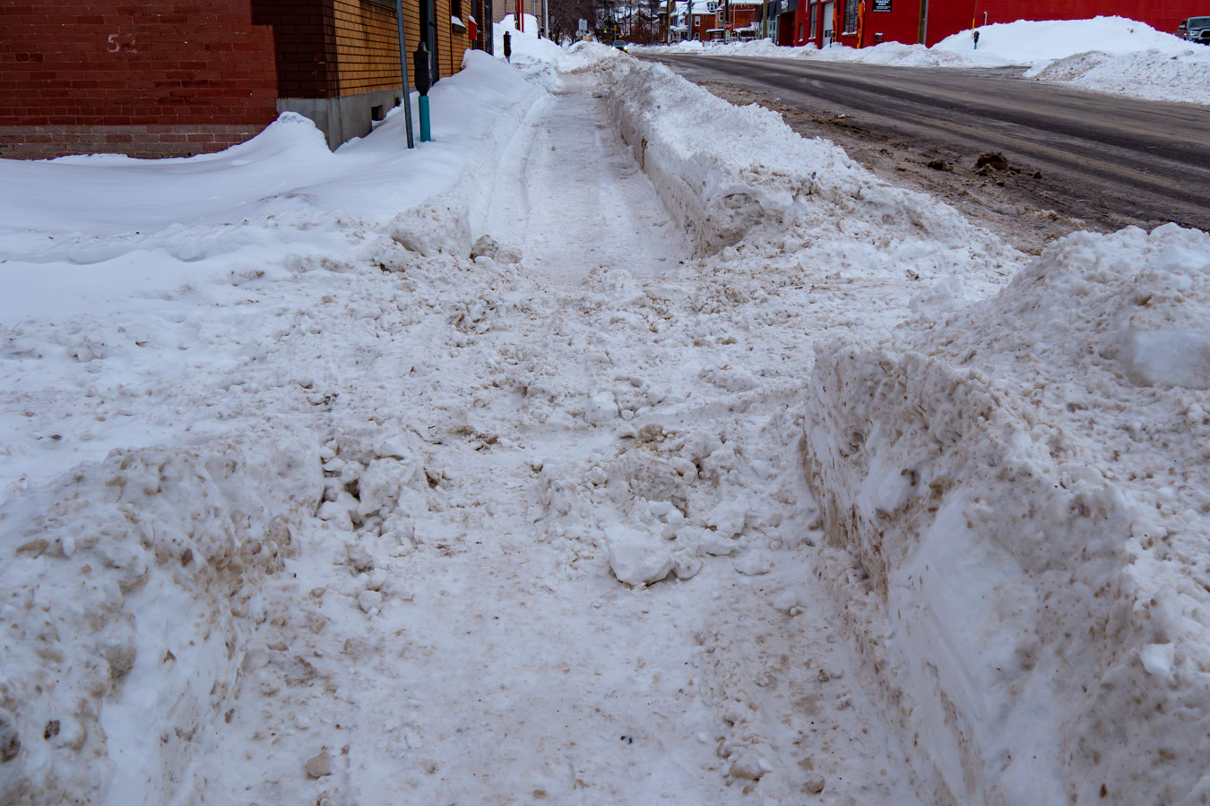 Sidewalk plow clears the sidewalk and then slack-jawed, knuckledraggers put snow back.