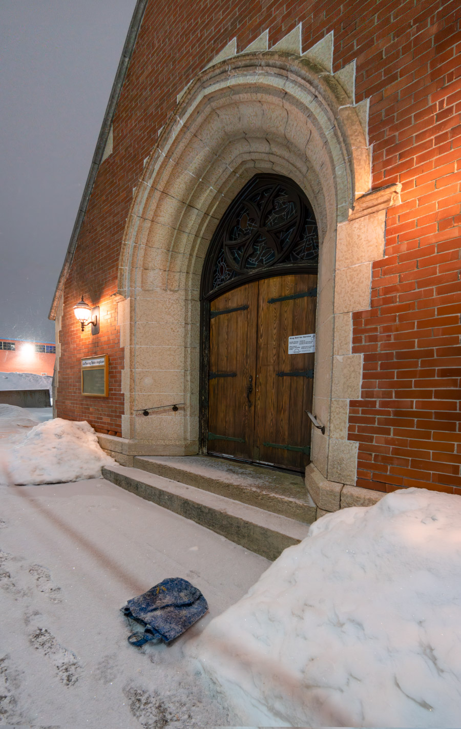 There is a fridge in the front yard. A sheet of plywood looks like it was removed from somewhere. I think it was covering the window area.