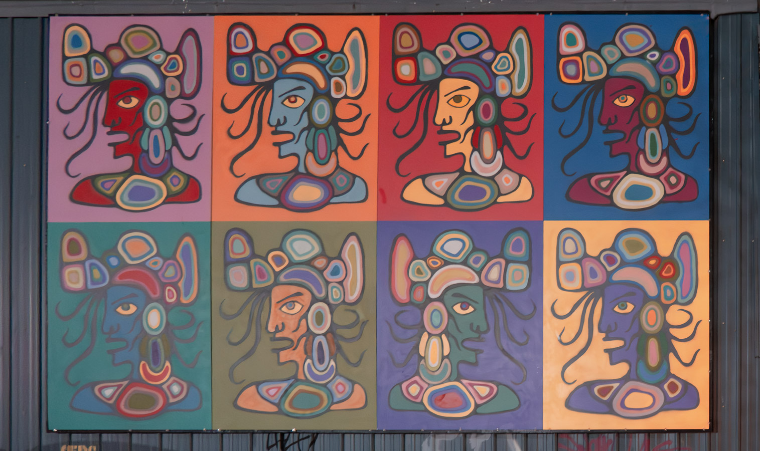 Andy Warhol meets Norval Morrisseau.  Too bad that this style of art is the only style of Indigenous art that anyone sees.  What art did the Indigenous people create BEFORE Europeans arrived in Canada?  Before beads. Before cloth. Before paints. Before canvas.
