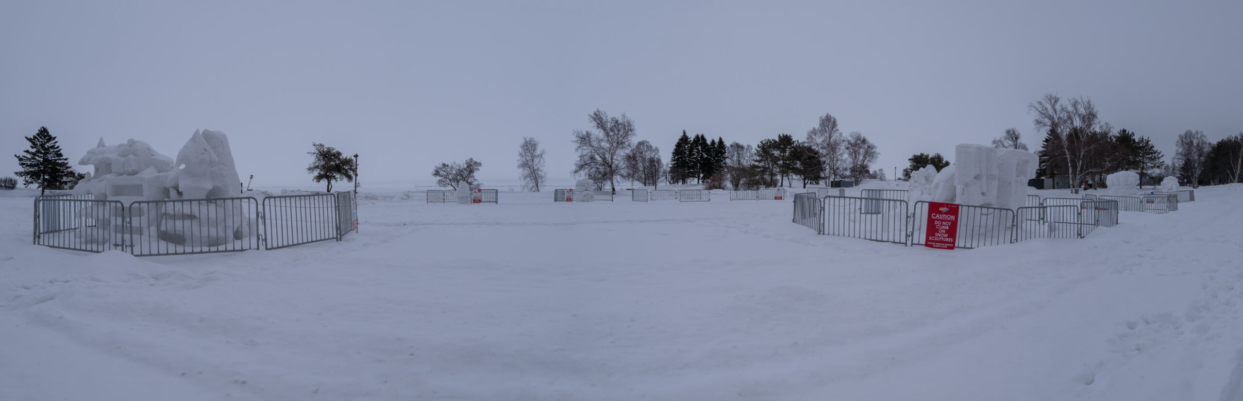 Snow sculptures still there.