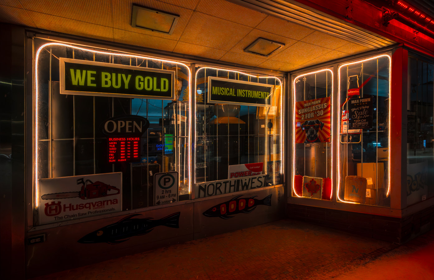 Not a lot of lights in the downtown core. There is some colour.
