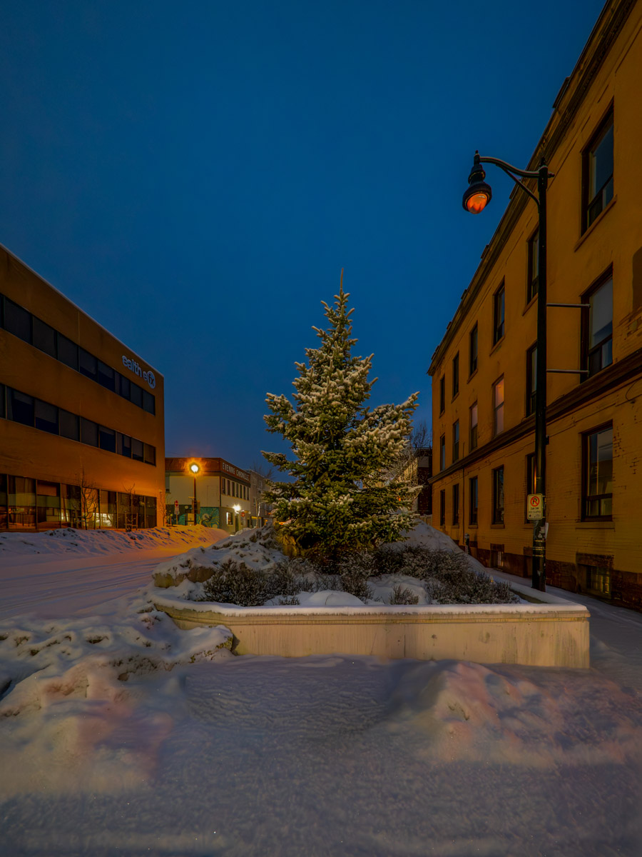 I wanted to photograph this tree because the way that the light from the street light was hitting it. Just when I was getting my camera out of the bag, the light shut down. Only this light.