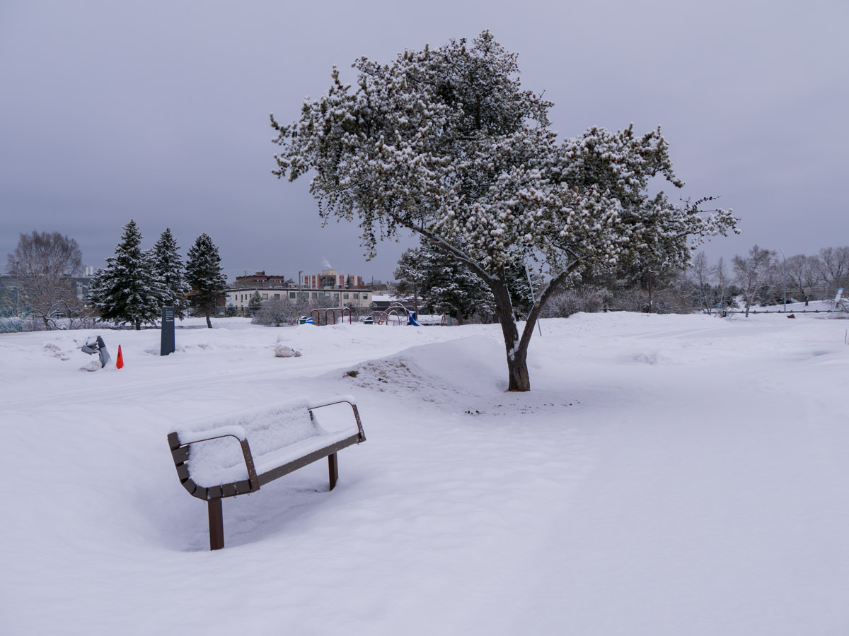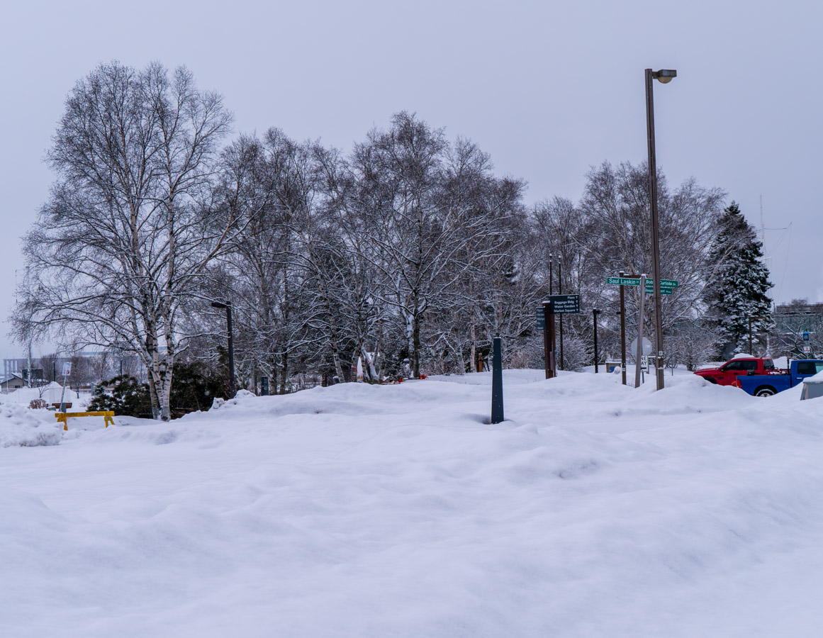 Snowing again! Great. Just great. No sunrise to photograph this morning. On the bright side, it is warmer than yesterday.