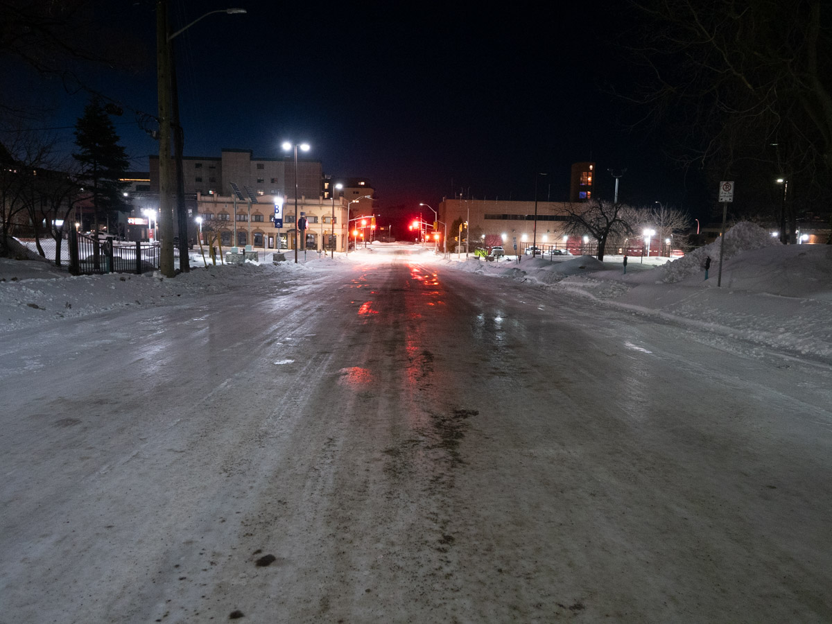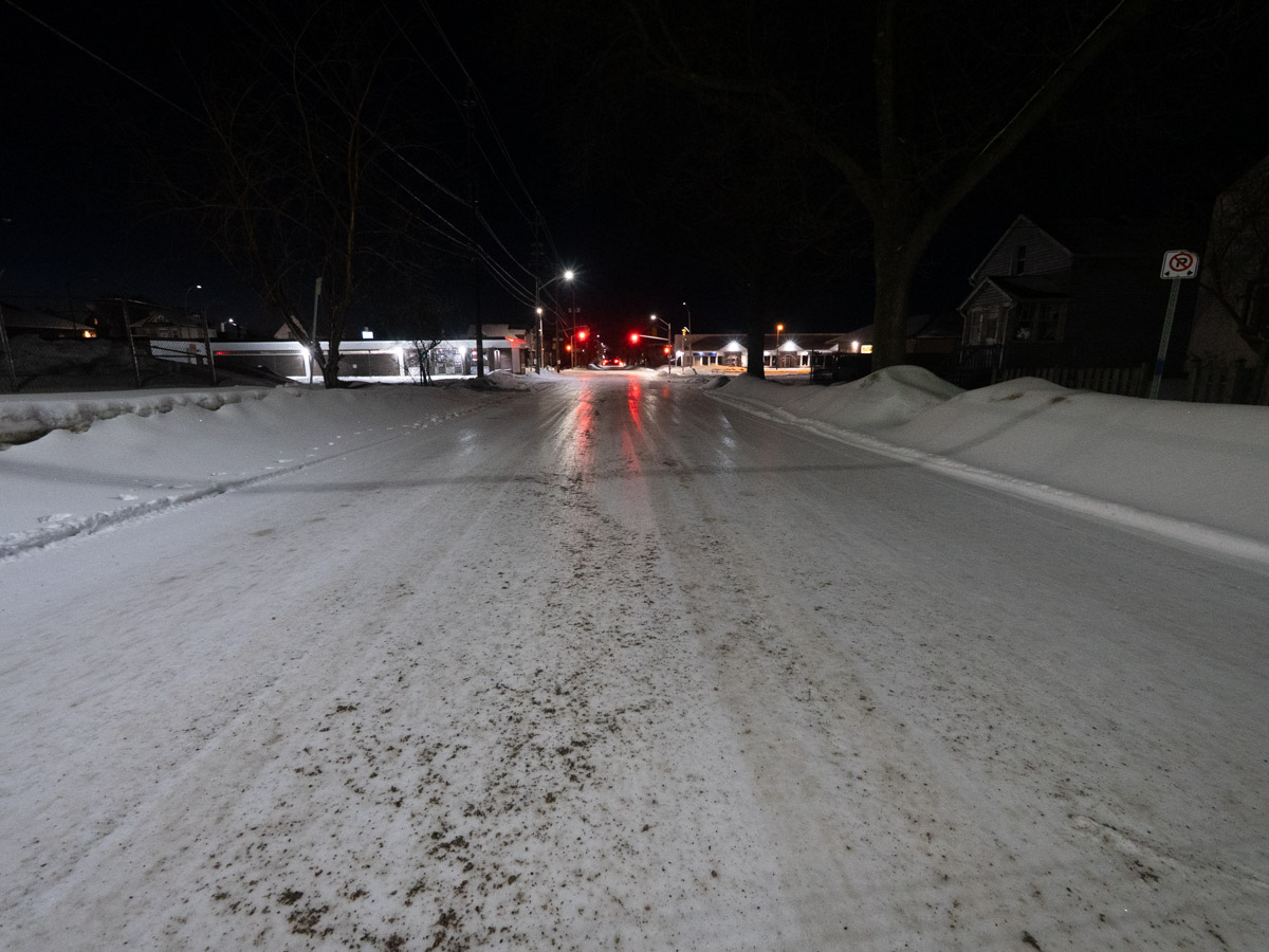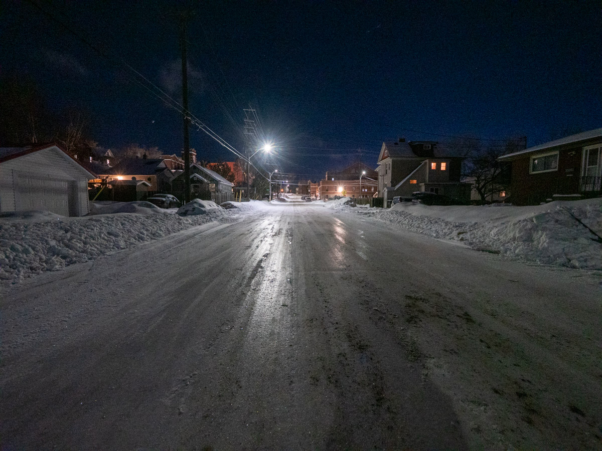 First morning that I can remember that it was safer walking on the sidewalk instead of the street.