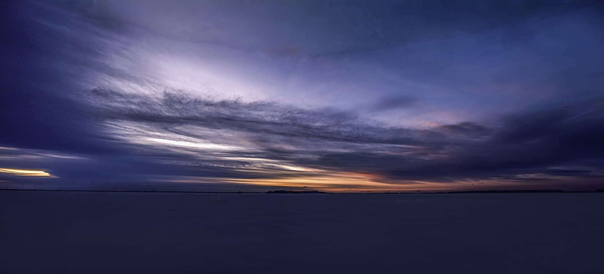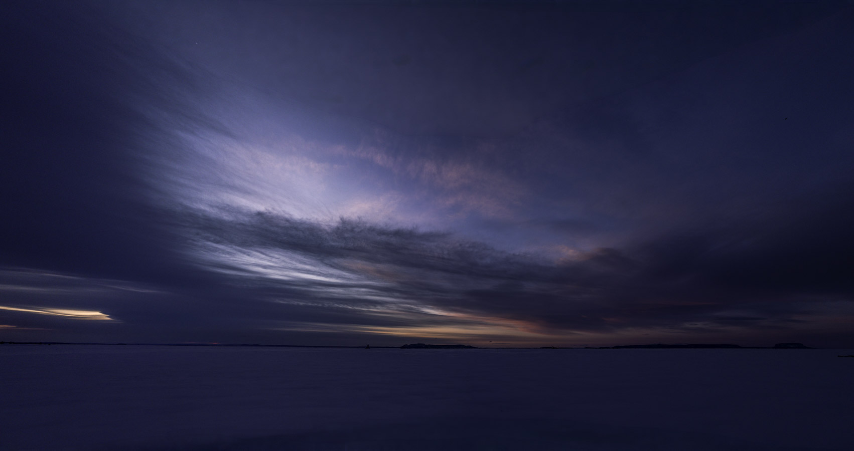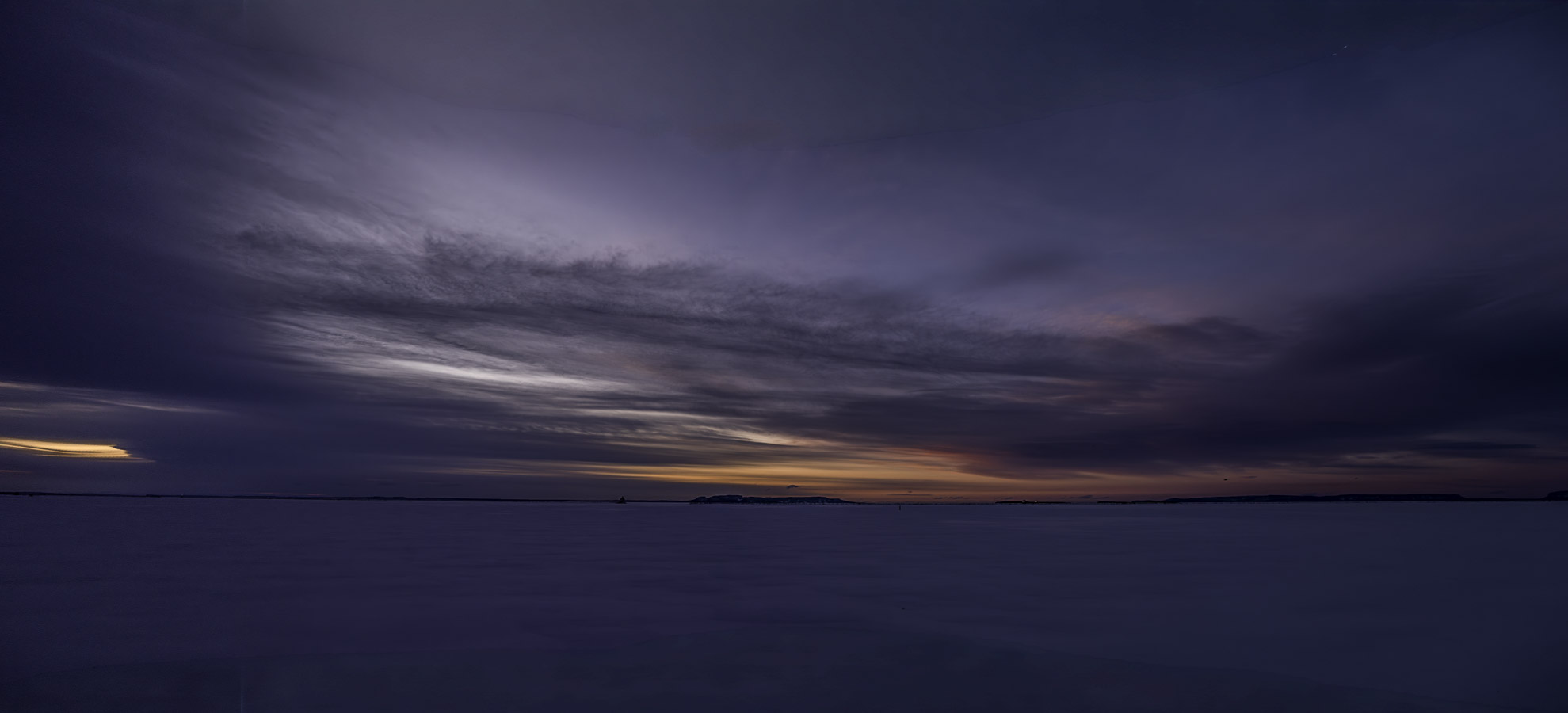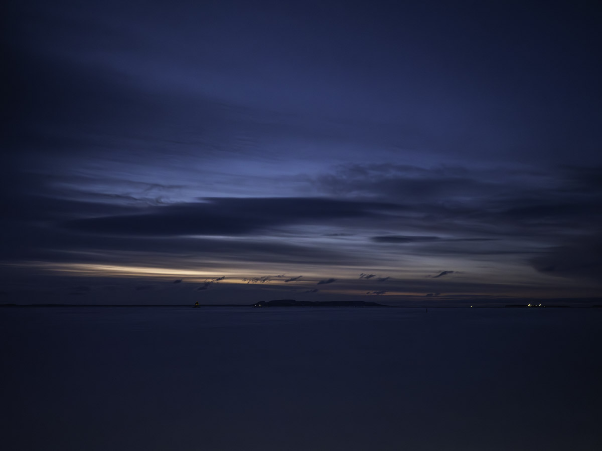 Partly cloudy with a lot less wind. Some early morning colour in the northern sky.