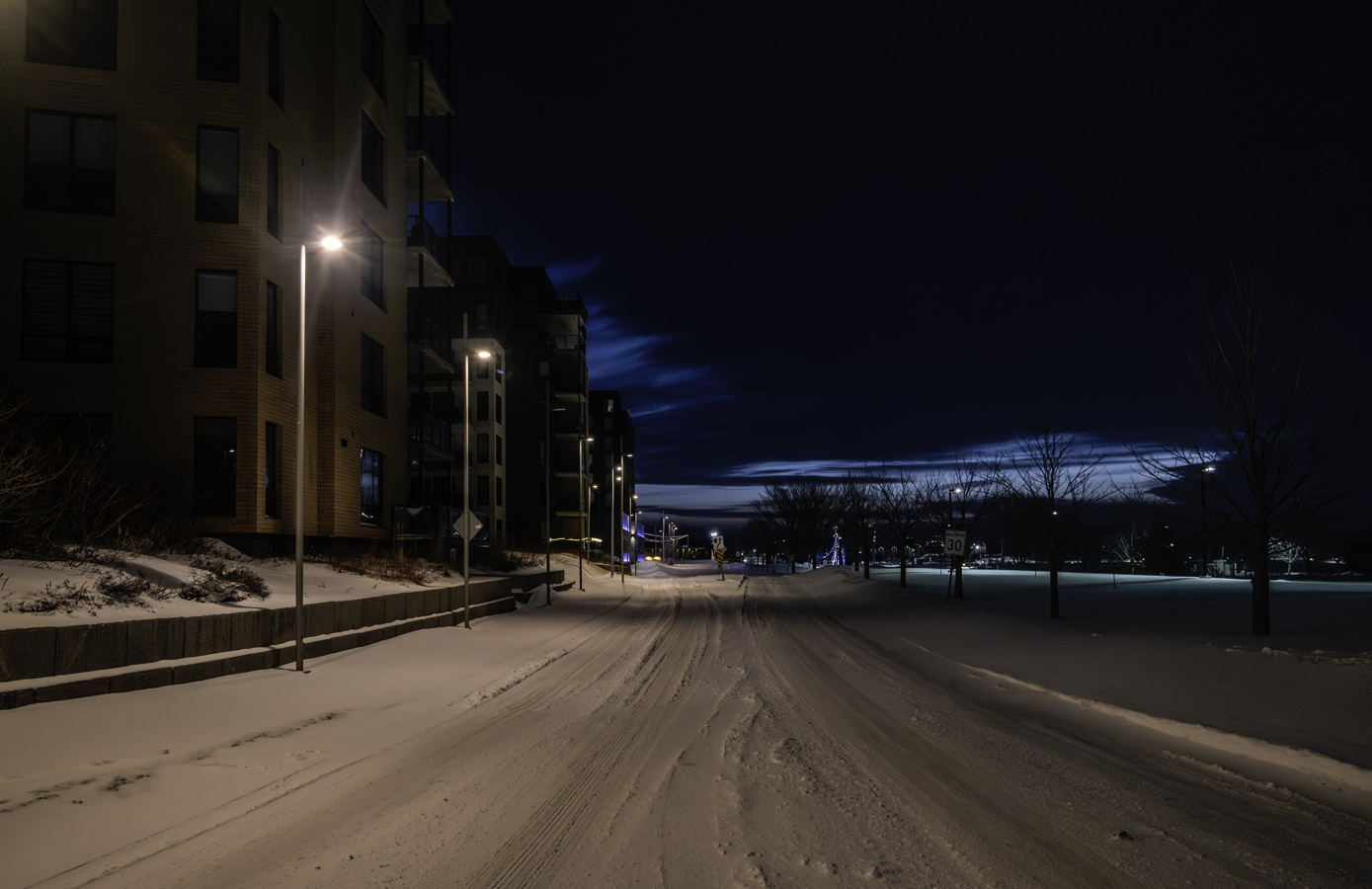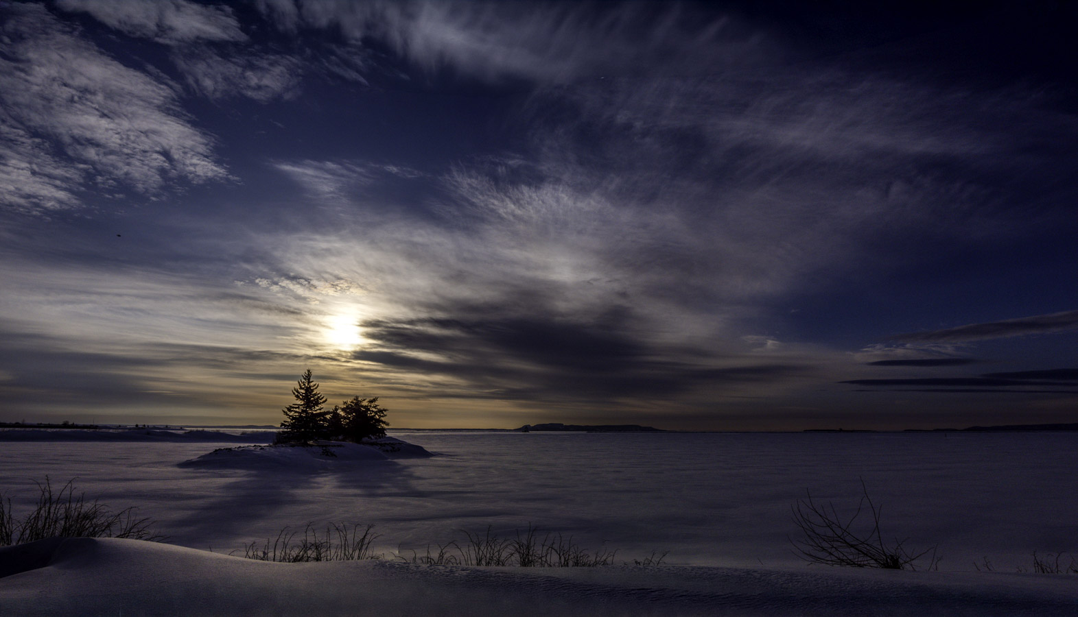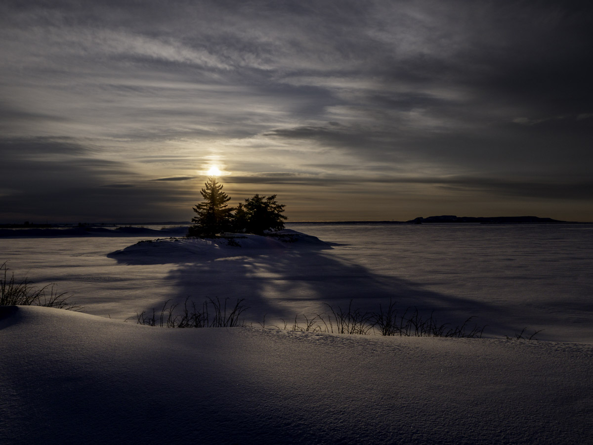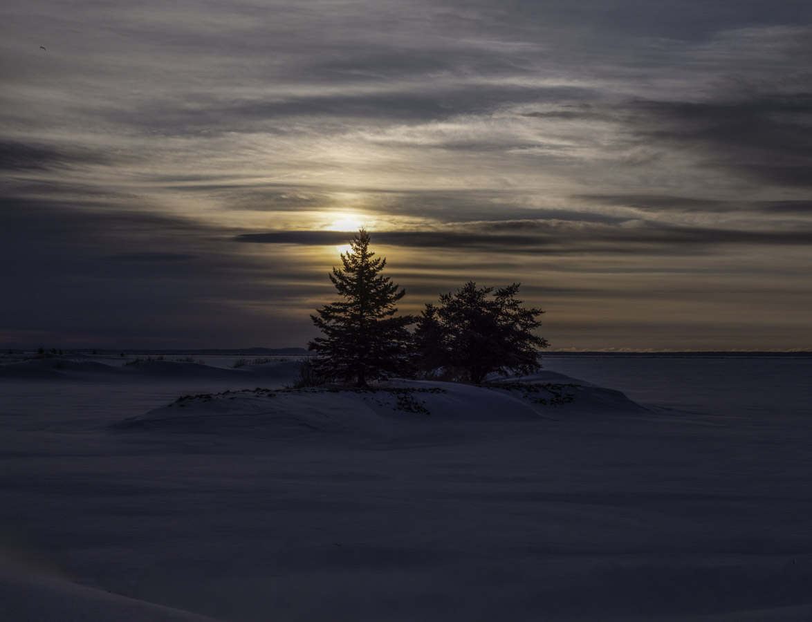 Partly cloudy with a lot less wind. Some early morning colour in the northern sky.