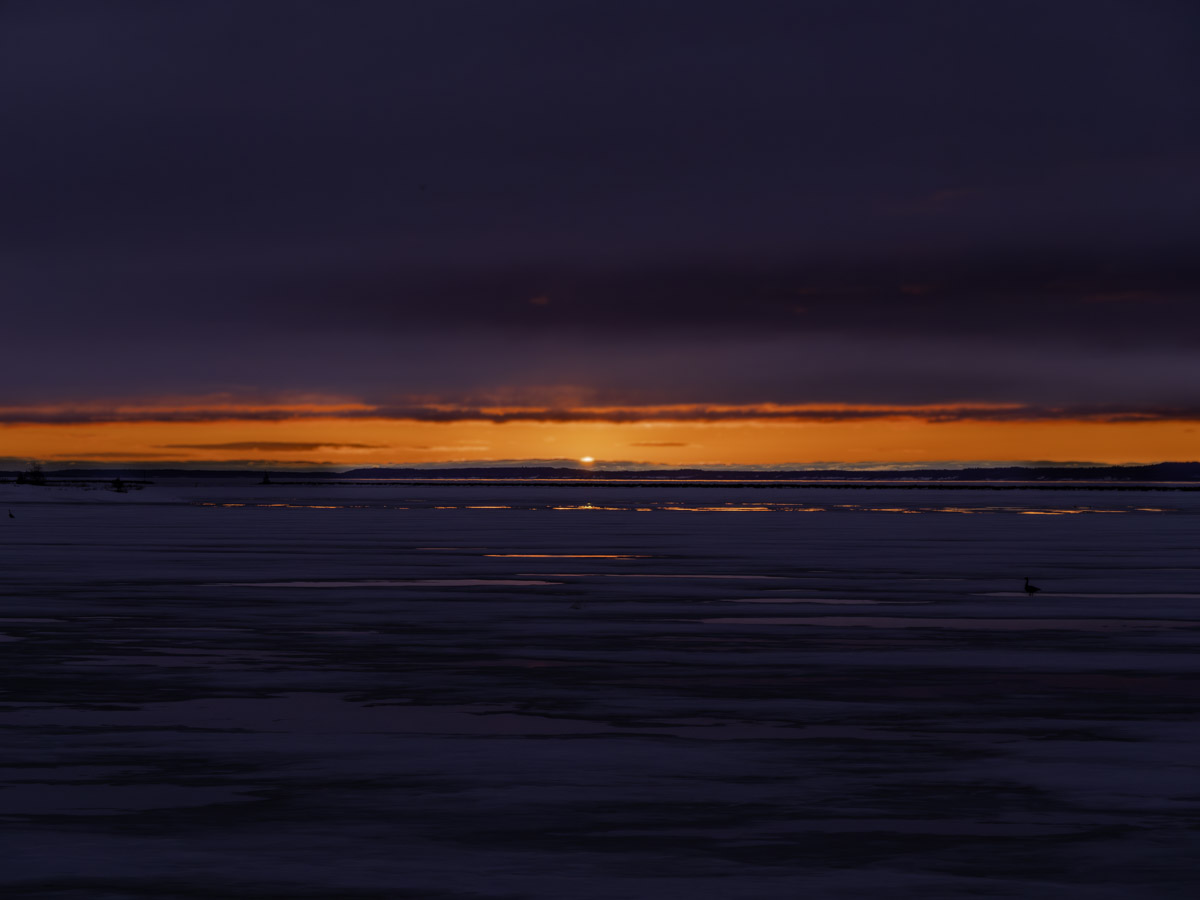 Overcast this morning but there is a small gap in the clouds that is showing some colour. Maybe, fingers crossed, the sun will make an appearance over there.