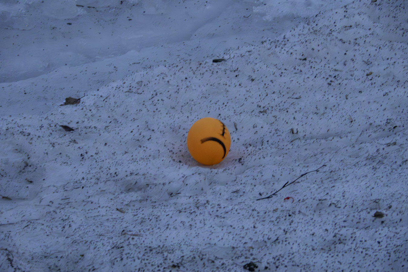 Red ball from yesterday has been replaced by orange mini football. Selective colour but the ball is small.