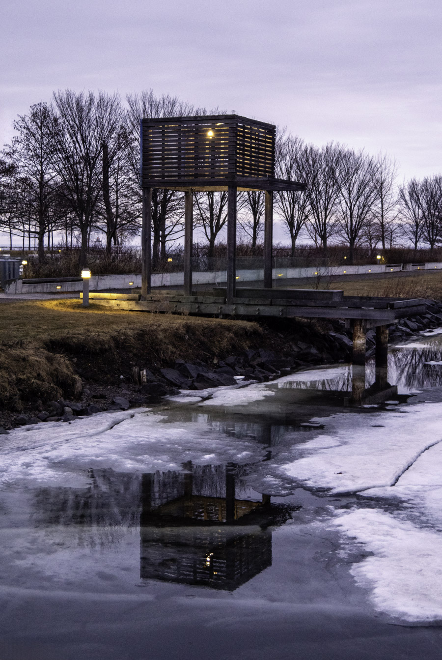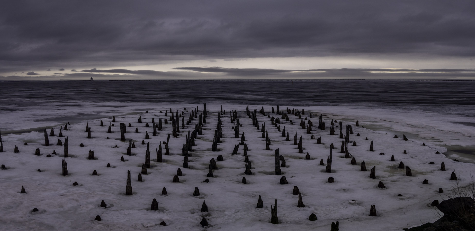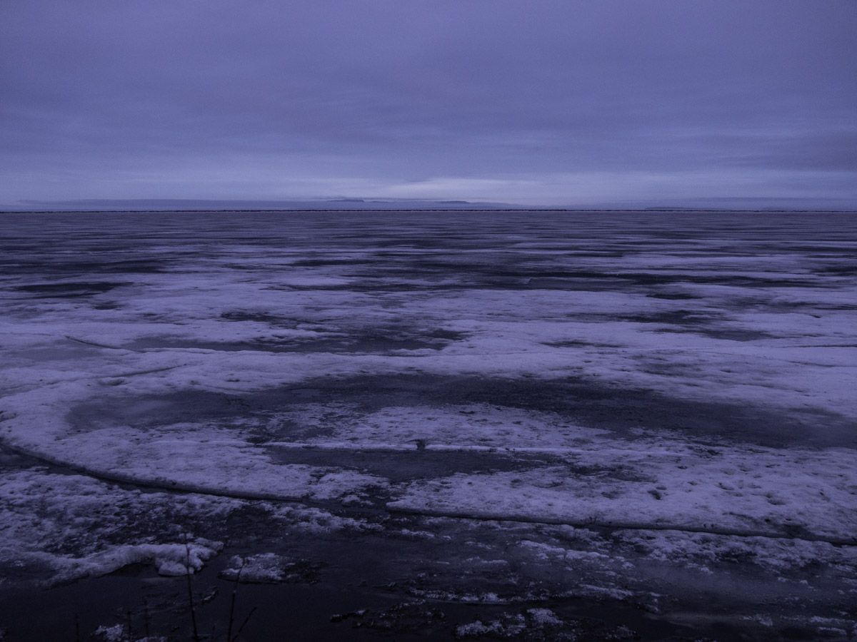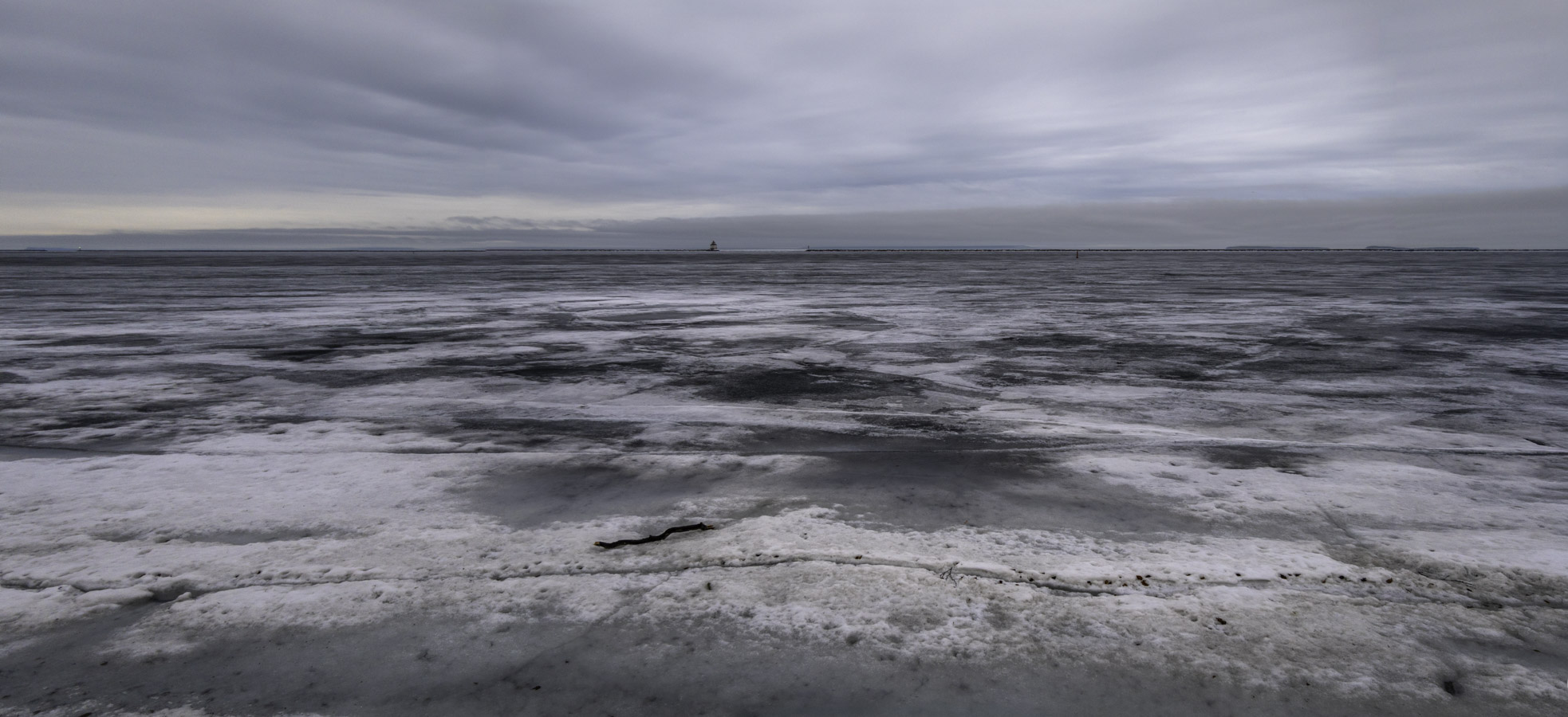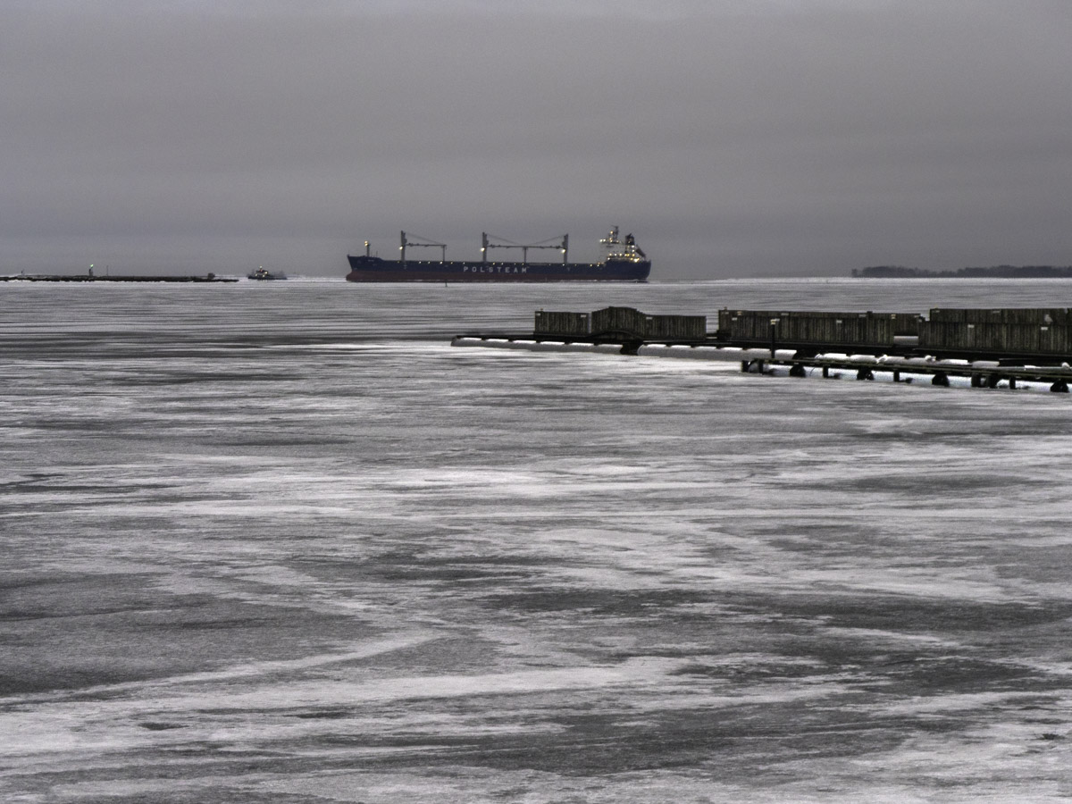 The ice is the most interesting thing in the harbour right now. Cracks, colours